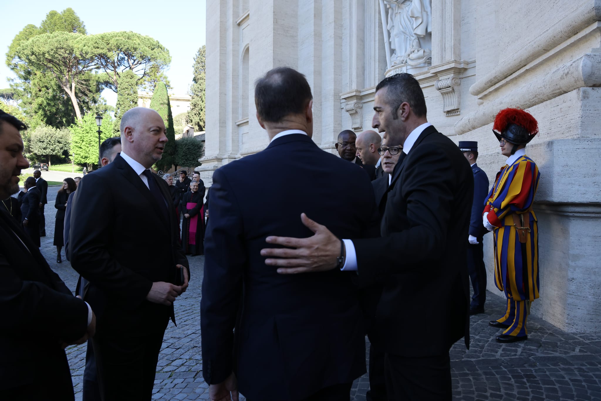 181 Министър-председателят Росен Желязков пристигна във Ватикана, където заедно с водената от него българска делегация ще присъства на траурната церемония по погребението на папа Франциск. Преди началото на церемонията премиерът Желязков лично ще изкаже съболезнования пред бившия държавен секретар на Ватикана кардинал Пиетро Паролин. Траурната церемония, на която присъстват лидери от цял свят, се състои на площад „Свети Петър“ във Ватикана. „Негово Светейшество папа Франциск беше истински приятел на България. Неговото морално лидерство и отдаденост на диалога ще бъдат запомнени от поколенията“, заяви премиерът Желязков в понеделник, след като беше съобщено за кончината. Според министър-председателя, Папа Франциск завинаги ще остане символ на мира, състраданието и единството. „Дано посланието му за надежда и братство продължи да ни води в трудните времена“, добави премиерът Росен Желязков. Може да ви хареса също КС образува дело по жалбата на „Възраждане” за „Лукойл“ Парламентът прие на първо четене законопроекта за държавния бюджет за 2026 г. Министър Теменужка Петкова и Асен Василев в словесен сблъсък за бюджета ЕК с наказателна процедура срещу България заради правната помощ за заподозрени и обвиняеми