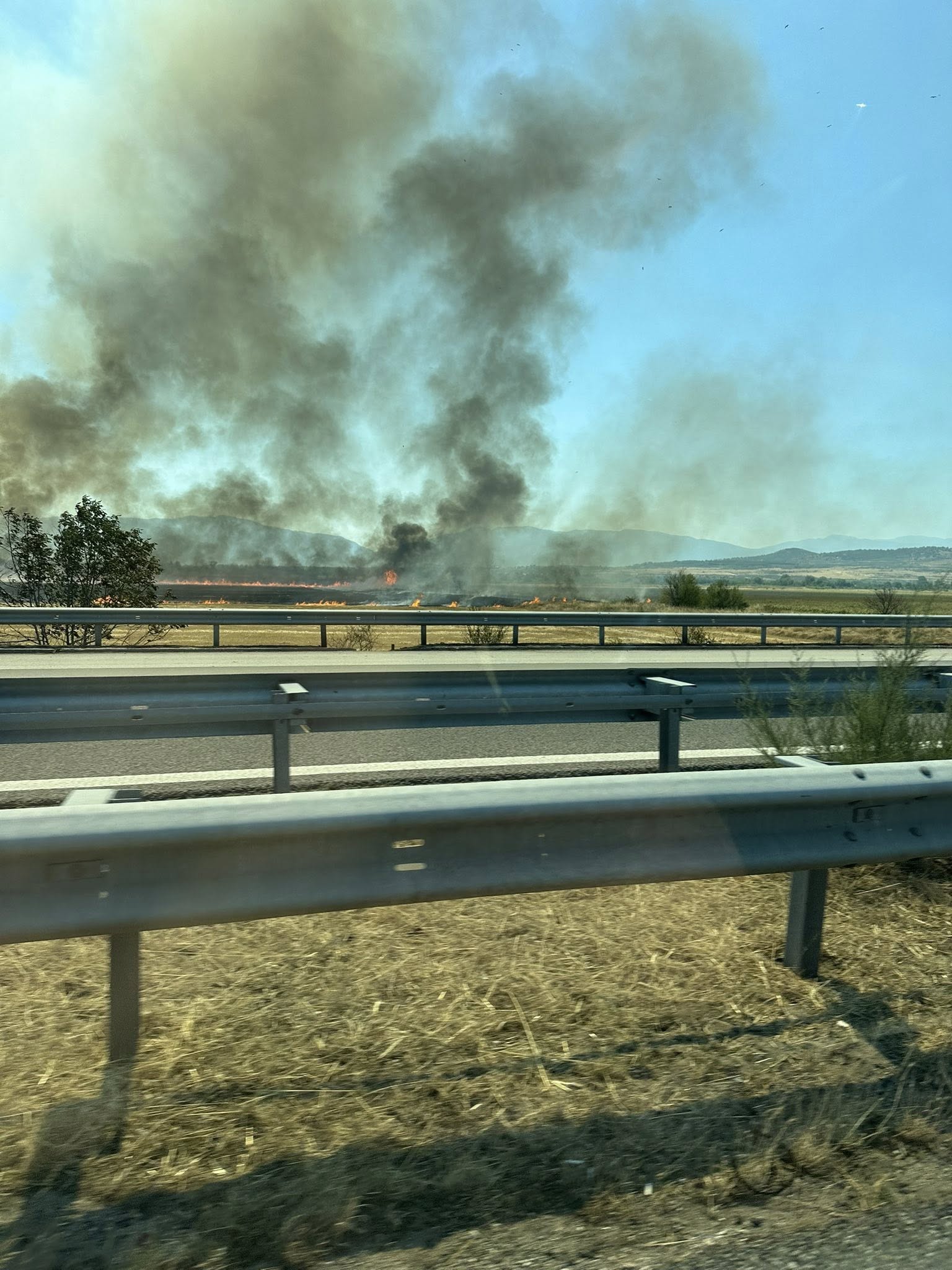 297 Пожар гори на 86 км. на магистрала „Тракия“ между Пазарджик и Пловдив. Запалили са се сухи треви и трънища. Няма опасност за сгради. Два екипа на пожарната в Пазарджик са там. Не се налага спиране на движението. Първоначално, когато огънят е пламнал, движението се е осъществявалоп в едната лента. Екип на полицията е на място. Пожарната в Пазарджик излезе с призив към водачите да карат с повишено внимание и с по-ниска от позволената скорост.блиц Може да ви хареса също Трима са пострадали, след като дерайлира бързият влак от Русе до Пловдив Директорът на БАБХ: Има опити за политическо влияние при проверките Нормален е трафикът на граничните преходи и пунктове в страната Директни пътнически влакове между България и Украйна тръгват от юни, ще се движат всеки ден
