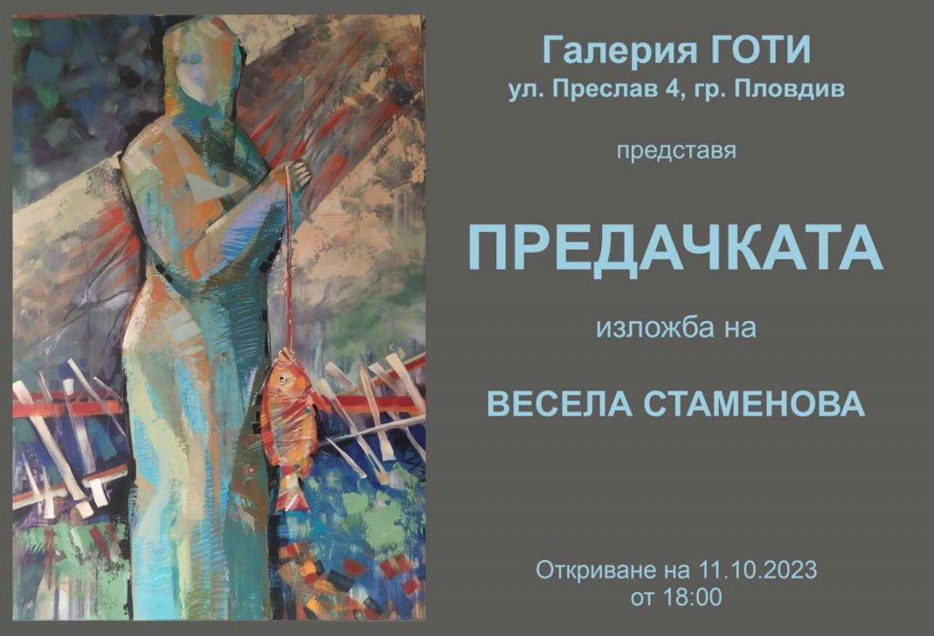 162 Най-новото арт пространство в Пловдив – Галерия ГОТИ (ул.“Преслав“№4, до зала „2019“ на ГХГ) има удоволствието да ви покани на откриване на изложба – живопис и металопластика на Весела Стаменова, което ще се състои на 11 октомври от 18 часа. Весела Стаменова е не просто художник и скулптор. Тя е жена-енергия, жена-хала и нейното присъствие не остава незабелязано. Всеки, посетил изложбата ще се увери в това. С еднаква лекота авторката опитомява метала, камъка и живописта, а около нея винаги има аура от добро настроение в съзвучие с името й. Весела Стаменова „преде“ нишката на Съдбата в новата си изложба, която е нарекла „Предачката“. За своята концепция авторката казва: „За някои митологии началото на живота започва с изпридането на нишката на съдбата. В този смисъл без предачката няма нито начало, нито съдба и затова нарекох изложбата си „Предачката“. Всичко, което виждаме, преживяваме или усещаме, хората в чиито животи нахлуваме, тези които нахлуват в нашия живот, начините ни на реакция в различни ситуации, правото ни на избор, правилен или не особено, всичко това е нишката на живота. Понякога тя е цветна, графична или даже без цвят( особено когато сме тъжни или наранени ) безплътно връзваща душите към реалността, докато дойде време нишката да свърши, да се скъса или да бъде отрязана… Радвайте се на всичките проявления на Нишката, тя е вашият живот, а аз искам да Ви направя съпричастни с част от моята нишка. На всички, които могат да се зарадват , посвещавам!“ – Весела Стаменова На 11 октомври от 18 часа ще се потопим заедно в света на жената-творец, която преде толкова много нишки в света на изкуството, че срещата с нея е празник, а досега с нейното многопластово творчество е радост за душата. Може да ви хареса също Премиера в Драматичен театър Пловдив – „Дреднаути. Пиеса за женска публика“ AL BANO: Да пея на сцена като Античния театър в Пловдив е чест и вдъхновение Ансамбъл „Тракия“ с нов мащабен спектакъл, вдъхновен от река Марица България с пълен национален отбор за Европейското първенство по стрелба с лък в Пловдив