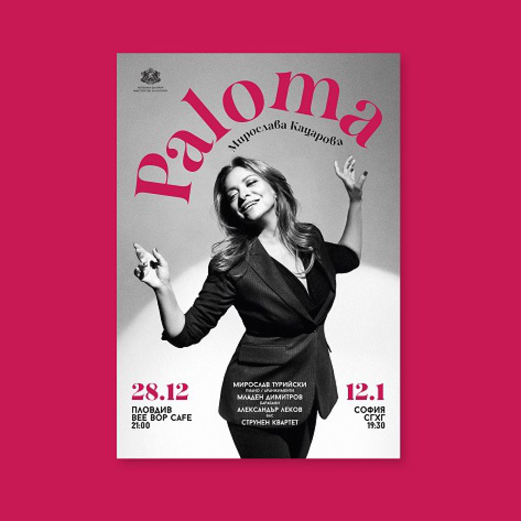 214 През последните десет години джаз певицата Мирослава Кацарова създава ежегодно по една нова концертна програма, която се отличава със специфичен музикален материал, нова звучност, силни, умни аранжименти, разказани истории. Paloma, както е заглавието на новата поредица от концерти, се появява след Singin’n’Swingin’, Desafinado, April In Paris, Cinema, Blue Moon Songs Of Billie Holiday, The New Standards, Electronic Dreams, Bluetronic и „Като в картина на Шагал“. Paloma, точно като старата мексиканска песен. Една от любимите версии на Мира Кацарова на тази песен е на Каетано Велосо. Особено важен акцент в този своеобразен музикален, но и филмов разказ, който предстои в Пловдив и София ще бъде преработката на познатите стари латино песни. Оркестрациите за струнния квартет са неконвенционални в съзвучие с типично джазовата рехармонизация, силно подчертана от класическото джаз трио: пиано, бас, барабани. С тези нови аранжименти на пианиста Мирослав Турийски ще изпратим старата и ще посрещнем новата година на 28 декември от 21:00 ч. в Bee Bop Cafe, Пловдив (билети на място с предварителна резервация) и на 12 януари от 19:30 ч. в Софийска градска художествена галерия (билети в мрежата на Eventim). „Тиха и сладостна носталгия по черно-белите филми на XX век, по техния саундтрак и естетика, по наивните им, но автентични настроения – това е фокусът на новата ни концертна програма. Внимателно и с любов съм избрала музикални теми, които ме изразяват и отговарят на идеала ми за песен: мелодична, красива линия, със съвършено втъкан текст в нея. В програмата съм подбрала песни с фини препратки към магическия реализъм на латиноамериканската култура като Cucurucucu Paloma, Samba de Bencao, Manha de Carnaval (Black Orpheus), Desafinado, Amapola, Mas Que Nada, Dindi и още други, повечето от тях свързани с филми. Миро Турийски е претворил стария музикален материал и преосмислил темите в него така че да звучи модернистично, но и носталгично и с уважение към оригинала.“, разказва Мирослава Кацарова. С нея на сцената ще бъдат още Мирослав Турийски (пиано), Младен Димитров (барабани), Александър Леков (бас) и струнен квартет Perfect – Ивелина Христова и Диляна Давидова (цигулки), Мария Венкова (виола) и Антоанина Юрганджиева (виолончело). С тези концерти Мирослава Кацарова отбелязва и още една годишнина – тази на 22-ия рожден ден на предаването ѝ по Jazz FM Radio – Desafinado. Двата концерта се осъществяват с подкрепата на Министерство на културата. Може да ви хареса също Драматичен театър – Пловдив с премиера на спектакъла „Записки по българските въстания“ Живот по ноти, от първия до последния акорд, продължава и през 2026 Премиера на единствената по рода си фотореалистична анимация в страната 50 години история в кадри: Хорът на пловдивските момчета „Стефка Благоева“ кани на юбилейна фотоизложба „На крилете на песента“