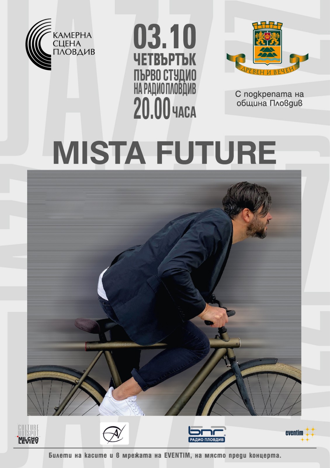 356 Камерна сцена Пловдив кани меломаните на следващото събитие от есенната си програма. Концертът на Mista Future е на 3 октомври, от 20.00 часа в Първо студио на Радио Пловдив. Артистите в групата имат дългогодишно партньорство в различни музикални формации. Това са: Георги Илиев (Mista Future) – бас, синтезатор, глас, Чавдар Гочев (Чарли) – китара, Цветан Момчилов (Chillov) – синтезатори, Галин Ненов (KillaBee) – гласова перкусия/бийт бокс, MC и Емил Иванов – ударни. Идеята “Mista Future“ е вдъхновена от аналоговия синтез в комбинирането му с конвенционални музикални инструменти. В търсене на хип-хоп звучене, ефирни мелодични линии, разположени върху ниско звучащи хармонии и ритмични “противоречия”, Mista Future създава едно движение през няколко жанра, музика със съвременна форма и скрит преден план. Композитор и продуцент на проекта е Георги Илиев. Една от целите е постигане на съвременно електронно звучене, без използване на дигитални инструменти и тембри от т.н. семпли. За повече органичност в ритмичен план и уникална гласова перкусия в записите участва бийтбоксърът Галин Ненов – KillaBee. Mista Future е представен на фестивала Varna Jazz Days през 2021 г. Месец след събитието два трака от албума вече звучат като аудио шапка за предаването “45 оборота в минута” по Хоризонт-Радио Варна. В следващата 2022 г. излиза и ремастериран вариант от Младен Димитров – Mr. Moon, а Георги Илиев вече използва Mista Future като артистичен псевдоним, който той предпочита да свързва с проекти с алтернативно-експериментална насоченост и в музикално-продуцентска дейност. През 2024 г. музиката на Mista Future беше представена на фестивала “A to Jazz”, както и на откриването на 10-тото издание на Q Film Fest. На 3ти октомври 2024 г., музикалният проект от първия самостоятелен албум на Георги Илиев гостува на Камерна сцена Пловдив. Събитието се осъществява с подкрепата на Община Пловдив и е част от Културния календар на града за 2024 година. Билети се продават в мрежата на Ивентим, както и на място преди концерта. Може да ви хареса също Скулптурите на Огнян Читаков в галерия „Димитър Георгиев“ – Пловдив Пловдив празнува 270 години от рождението на Моцарт с ексклузивен „бутиков“ фестивал ППД „Ангел Букорещлиев“ ще представи България на престижния фестивал Costa Barcelona Music Festival Хитова комедия с Йоана Буковска и Димо Алексиев гостува в Пловдив през май