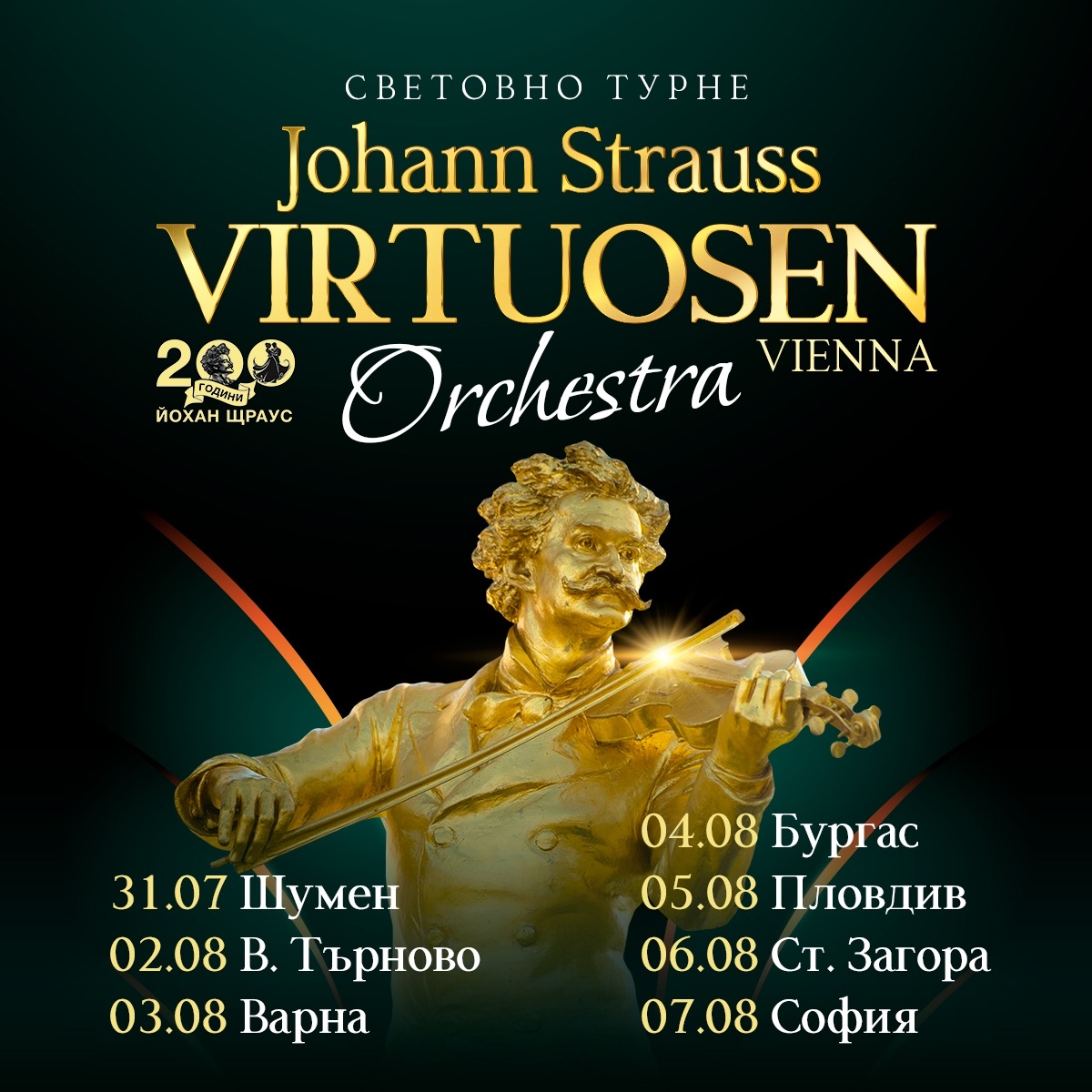437 България се включва в отбелязването на 200 години от рождението на Йохан Щраус – син със седем грандиозни концерта под открито небе това лято. Елитният виенски оркестър „Йохан Щраус Виртуозен Оркестра“ включва България в своето грандиозно световно турне, посветено на краля на валса. Под изтънчената палка на именития маестро Гуидо Манкузи оркестърът ще пресъздаде блясъка и магията на златната епоха на виенската класика. Виртуозните музиканти, подбрани от най-престижните оркестри на Виена, ще предложат на публиката несравнимо преживяване, изпълнено с ритмичната лекота и финеса на Щраусовите шедьоври. Началото на турнето е в гр. Шумен на 31 юли, а последният концерт в двора на Военна академия в гр. София. Концертът в Пловдив е на 5 август на Летния театър Бунарджика от 21:00 часа. „Идеята е да се върнем към класическата традиция от времето на Щраус – син – концертите да са на открито, да бъде празник през под звездите през лятото, когато повечето хора са във ваканция“, споделят организаторите. 2025 година е обявена за годината на Щраус и в цял свят се провеждат редица събития, посветени на великия композитор, който първоначално учи счетоводство. Благодарение на майка си Анна момчето взема тайно уроци по цигулка и теория на музиката. Първият си концерт изнася през 1844 г. Огромният му успех дава надежда на баща му Йохан Щраус – баща, че синът има талант. Следват турнета в Европа и Америка след смъртта на баща си, Йохан Щраус – син застава начело на неговия оркестър и става диригент на „дворцовите балове“. Щраус се жени 3 пъти, но няма деца. За най-известно негово произведение се смята валса „На хубавия син Дунав“, който ще бъде изпълнен от „Йохан Щраус Виртуозен”. След триумфални концерти в Гърция, Япония и Китай, знаменитият оркестър „Johann Strauss Virtuosen Orchestra“ избира България за следващата си музикална спирка. Всяка държава от турнето е представена от водеща национална филхармония, а честта да бъде част от този забележителен проект в България се пада на Плевенската филхармония. Концертите ще се състоят на емблематични и автентични сцени, които носят духа на историята и културата на България: 31 юли – Шумен, Летен театър 2 август – Велико Търново, Царевец 3 август – Варна, Летен театър 4 август – Бургас, Летен театър 5 август – Пловдив, Летен театър Бунарджика 6 август – Стара Загора, Летен театър 7 август – София, Военна академия Турнето на „Йохан Щраус Виртуозен“ обещава да се превърне в най-значимата културна проява на годината в България, посветена на Йохан Щраус – син. Повече информация и билети за турнето на: www.vienna-trend-events.com, както и мрежите на Ивентим, Грабо, и касите на OMV и Грабо в цялата страна. Може да ви хареса също Премиера в Драматичен театър Пловдив – „Дреднаути. Пиеса за женска публика“ AL BANO: Да пея на сцена като Античния театър в Пловдив е чест и вдъхновение Ансамбъл „Тракия“ с нов мащабен спектакъл, вдъхновен от река Марица България с пълен национален отбор за Европейското първенство по стрелба с лък в Пловдив