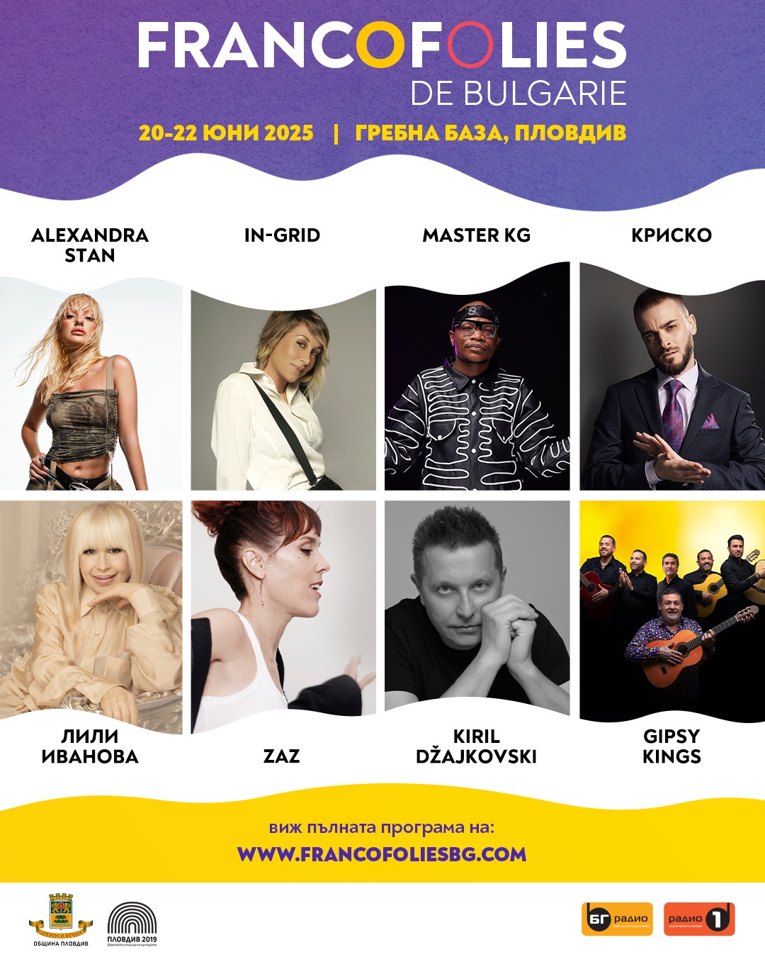 625 Пловдив се превръща в културна столица на лятото. Освен впечатляващата концертна програма, фестивалът „Франкофоли“ 2025 предлага богата съпътстваща програма, която ще превърне дните между 20 и 22 юни в истински празник на изкуството и вкуса. Дневната програма на „Франкофоли“ започва с френски брънч и изкуство под дърветата На 21 и 22 юни обновената градска градина до Природонаучния музей ще бъде дом на специално дневно събитие – френски брънч на открито, кулинарно изкуство и зелени инициативи. Изскачащият ресторант „The Kitchen Freaks“ ще предложи авторско меню, вдъхновено от фестивала, с участието на шеф Андре Токев, който ще приготвя ястията на място с продукти от български производител. Обръщаме специално внимание, че всеки притежател на билет за музикалните събития на „Франкофоли“ получава 5% отстъпка. Събитието в градската градина (до Природонаучния музей), с начало в 9:00 ч., ще включва още изложба на пловдивски художници, забавно търсене на „скрити животинки“ с Регионалния природонаучен музей – Пловдив, томбола с награди и подаръци, еко-декорации и устойчиво оформление. Капана Фест и Франкофоли – „Душата на Квартала“ оживява в нова форма, специално създадена за фестивала Капана Фест отбелязва 10 години със специално участие във „Франкофоли“ 2025. Артистичният квартал се пренася на територията на фестивала – зоната „Душата на Квартала“ ще бъде изпълнена с ръчно изработени съкровища от Базар Капана, артистична сцена, тематични каузи и атмосфера, която носи духа на Капана. На място ще имате възможност да откриете: – Тематични изложители от Базар Капана – с ръчно създадени съкровища, оригинален дизайн и вдъхновение – Малка артистична сцена с програма, подготвена от Мирослава Тодорова – куратор на музикалната сцена на Капана Фест – Истинската атмосфера на Капана – с флагчета, светлинни гирлянди и уют, който създава настроение за споделеност – Каузи, които си струва да подкрепите – срещи с активни организации и вдъхновяващи съмишленици Зона „Душата на Квартала“ на Гребната база Пловдив ще бъде отворена: – 20 юни: 16:00–00:00 – 21 юни: 10:00–00:00 – 22 юни: 10:00–23:00 Още български артисти и специални колаборации на сцената на „Франкофоли“: Тази година в три магични музикални фестивални вечери ще може да се насладите на ZAZ, Gipsy Kings, Лили Иванова, Master KG, Alexandra Stan, In‑Grid, Криско и още много други – който ви обещават много френски чар, световни хитове и незабравим ритъм. Към всички известни изпълнители в музикалната програма ще се присъединят и талантливите български артисти. На 21 юни (събота) ще може да чуете Виктория Благоева, а на 22 юни (неделя) младата група „Юпитер 7“. Виктория Благоева е 20-годишна певица от Варна, която впечатлява с гласа си на множество национални сцени. Полуфиналист е в последния сезон на тв формата „Гласът на България“. Освен певица, Виктория е и студент по дентална медицина и работи като дентален асистент – олицетворение на млад творец, който съчетава наука и изкуство. „Юпитер 7“ е част от проекта „Акага Академия“. Групата е сформирана от млади музиканти – приятели и студенти от НМА в София. Събира ги любовта към музиката и желанието да творят на български език. Името на групата символизира интереса на младите да покоряват и да откриват нови светове. Стилът им се отличава с модерно денс, поп и фънк звучене. Специален м