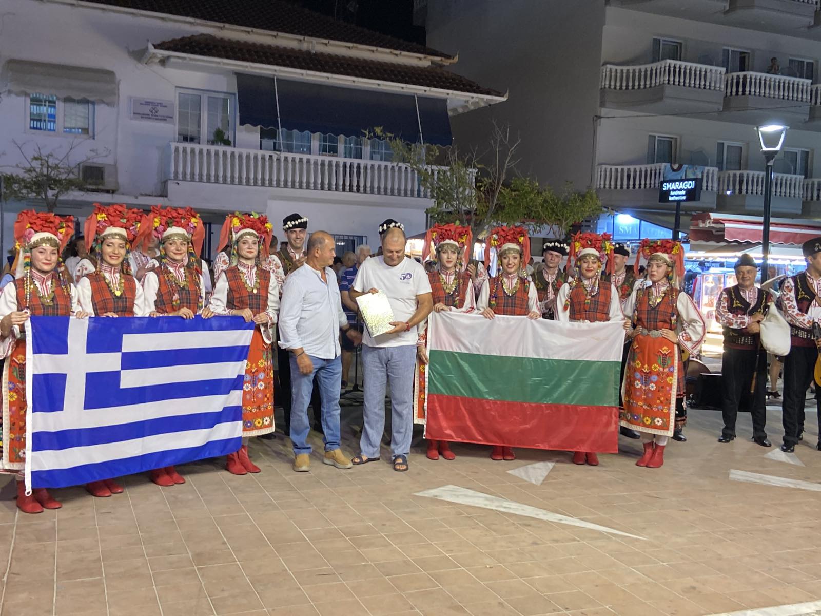 214 С бурни аплодисменти и овации беше посрещнато участието на Фолклорен ансамбъл „Тракия“ в престижния фестивал „Олимп“ – най-авторитетният фестивал в Северна Гърция. Тази година България беше почетен домакин на събитието, което се проведе в град Катерини в рамките на цял месец. Концертът на ФА „Тракия“ беше кулминацията на фестивала, а великолепните танцьори, оркестър и певици представиха най-доброто от българското фолклорно изкуство, демонстрирайки красотата и въздействието на българската духовна традиция, фолклор и музикално наследство. Публиката беше завладяна от виртуозните танци, кристалните гласове на певиците и магията на българските народни инструменти и дълго аплодира ансамбъла след продължилия повече от час и половина концерт. Сред присъстващите на събитието бяха Йоанис Думос, кмет на Катерини, Григорис Папахристос, председател на организационния комитет на Фестивала „Олимп“ Чавдар Агайн – консул в Генералното консулство на България в Солун, представители на гръцки браншови организации и представители на отдел „Култура“ от община Пловдив, водени от заместник-кметът по култура Пламен Панов. На Пламен Панов се падна високата чест и удоволствието да предаде специални поздрави и благопожелания от името на кмета на Пловдив Костадин Димитров към участниците и гостите на фестивала, както и да поднесе подаръци от името на кмета Димитров на кмета на Катерини, директора на фестивала и консула в Солун. Фестивалът „Олимп“ е сред най-престижните културни събития в Гърция. На 54-тото издание България е почетната страна и представи богатото културно наследство на страната ни в поредица от събития. Това се случва за първи път от началото на фестивала. Приветствия към гостите на площада в Катерини отправиха Мата Курти от Управителния съвет на Фестивала „Олимп“ и Чавдар Агайн – консул в Генералното консулство на България в Солун. Пловдив се представи на „Олимп“ с фокус върху културното наследство на най-стария жив град в Европа, с концерт на водещи изпълнители от Държавна опера Пловдив, както и с впечатляващата фолклорна програма. Градска художествена галерия – Пловдив показа в Центъра за Средиземноморски мозайки в Дион изложбата „Български икони“, съставена от редки и стойностни произведения. Голяма част от иконите са собственост на Пловдивската митрополия и участието им на фестивала се случи с благословията на Негово Високопреосвещенство Пловдивски Митрополит Николай. В програмата на 54-ото издание на фестивала „Олимп“, участие взе и Ансамбъл „Розова долина“ от Карлово с концерт на откриването, а Историческият музей в Петрич представи впечатляващата изложба „Тайни и загадки от Хераклия Синтика, пътуване във времето“. Фестивалът „Олимп“ е създаден през 1972 г. като през своята петдесетгодишна история е привлякъл множество известни гръцки артисти. През последните години отчетливо се засилва трансграничното сътрудничество като към атрактивната културна програма се добавят и тематични събития с фокус върху почетната държава. През настоящата година България бе обявена за почетна страна, което даде възможност да се поставят във фокуса на вниманието инициативи, значими за двустранните отношения. Събитията във фестивала „Олимп“ се проведоха на няколко ключови и културно значими локации в района н