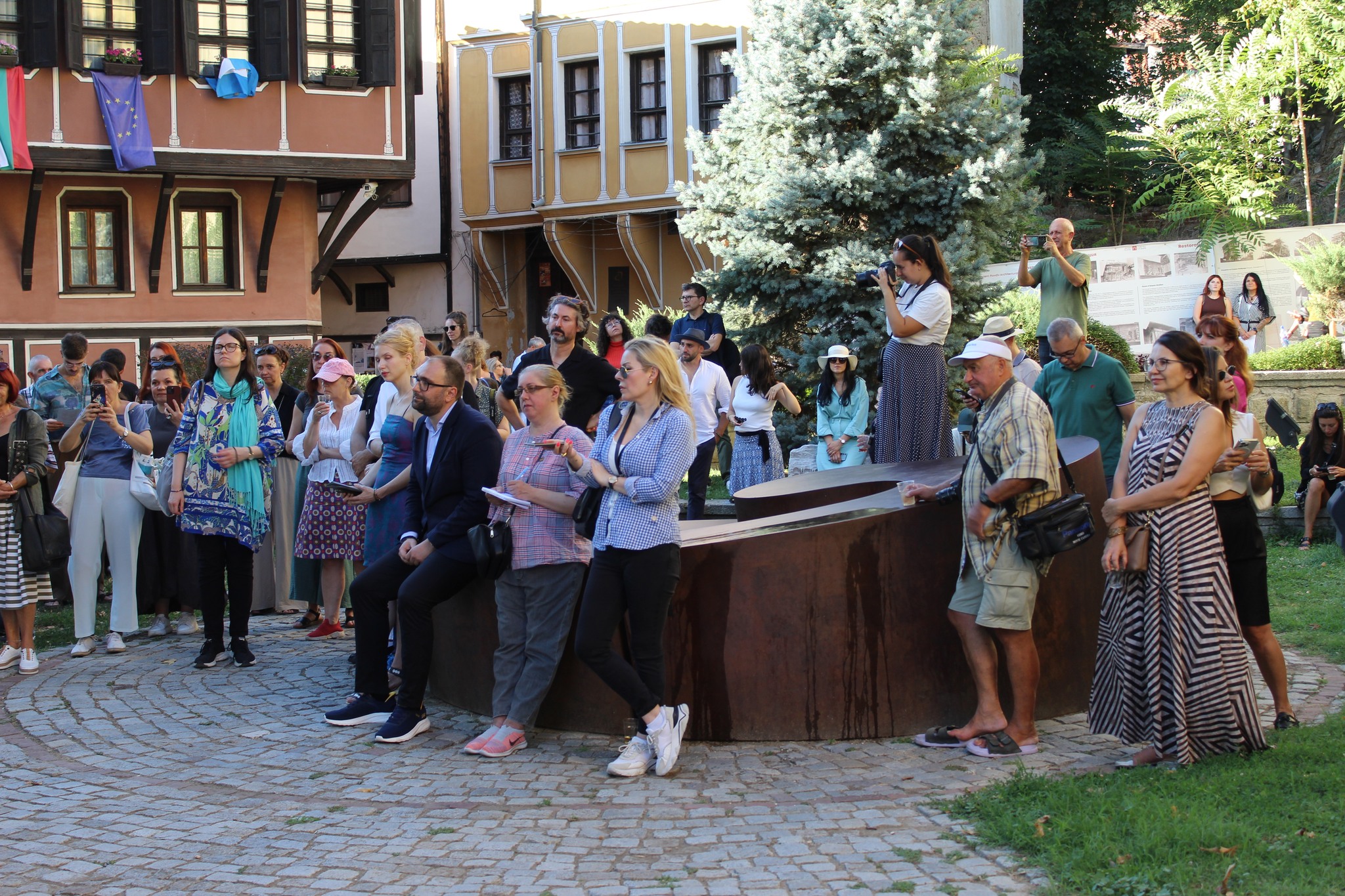 411 На площада, носещ името на Атанас Кръстев, в сърцето на Стария град (Лапидариума), на 1 септември започна едно от най-значимите културни събития на годината – Националните есенни изложби – Пловдив 2025. Куратор тази година е Весела Ножарова, а в проекта ѝ „Частица от река“ участват 14 съвременни български художници от различни поколения. Това са: Антони Райжеков, Борислава Бербенко, Боряна Росса, Велизар Димчев, Калин Серапионов, Калина Димитрова, Миряна Тодорова, Надежда Олег Ляхова, Невена Екимова, Ния Ценкова, Правдолюб Иванов, Сияна Шишкова, Стела Василева и Стоян Дечев. В изложбените пространства на Балабановата къща, Къща „Хиндлиян“ и Постоянната експозиция „Мексиканско изкуство“ на ГХГ-Пловдив – къщите, дворовете, дори щерните за събиране на дъждовна вода, са активни участници в изложбения разказ на проекта на Весела Ножарова. Там в рамките на месец могат да се видят сайт-спесифик инсталации, аудио-скулптура, видео творби, керамика, пластики от рециклирани материали, абстрактна живопис, ситопечатна фотография и много други. „Частица от река“ е художествен разказ за връзката между изкуството, мястото и времето – диалог между Стария Пловдив, легендарния Георги Божилов – Слона и съвременното изкуство. Проектът преплита миналото и настоящето в метафората на „животворната река“ – символ на непрекъснатия творчески поток, който извира от Небет тепе и преминава през поколения артисти. Националните есенни изложби 2025 бяха открити от заместник-кмета по култура, археология и туризъм на община Пловдив Пламен Панов и куратора Весела Ножарова. „В началото на тази година за пръв път, от незапомнени времена, видях, че има организиран конкурс за куратор на Националните есенни изложби. Това не е честа практика и считам за много напредничава и много прогресивна идеята, една толкова стара и традиционна изложба, която аз помня още от моите студентски години, да бъде подложена на кураторски конкурс и да бъде избран кураторски проект и с помощта на пловдивската община, той да бъде реализиран като национална изложба, представяща кураторската гледна точка към съвременното изкуство, с която на практика започва и изложбения сезон в България. Тогава, някъде в началото на годината, абсолютно ентусиазирано и вдъхновено, аз започнах да мисля за този кураторски проект като за една възможност да направя нещо с български художници, то да бъде много специално, за специалното място – тези стари къщи. Тази идея беше свързана със Стария град, с пловдивската бохема от 60-те години, за която и аз като изкуствовед, но и всички ние пазим много ясни образи и спомени в съзнанието си. Артистичната бохема на Пловдив, многото художници, които събира в края на 50-те години и през 60-те години се превръща в истинско явление. От 1967 започват да се правят и есенните изложби, които почти без прекъсване, създават една дългогодишна традиция в тези къщи. Истинското ми вдъхновение дойде именно от Стария град“, сподели по време на откриването Весела Ножарова. „Благодаря на Весела Ножарова за това, че така отдадено работи за реализирането на Националните есени изложби 2025 и разбира се на 14-те участника, които правят възможно това, което много искахме. А то е като традиция, която продължава от 67-а година насам, те да бъдат авторитетни, на високо ниво и за пореден път да показват 