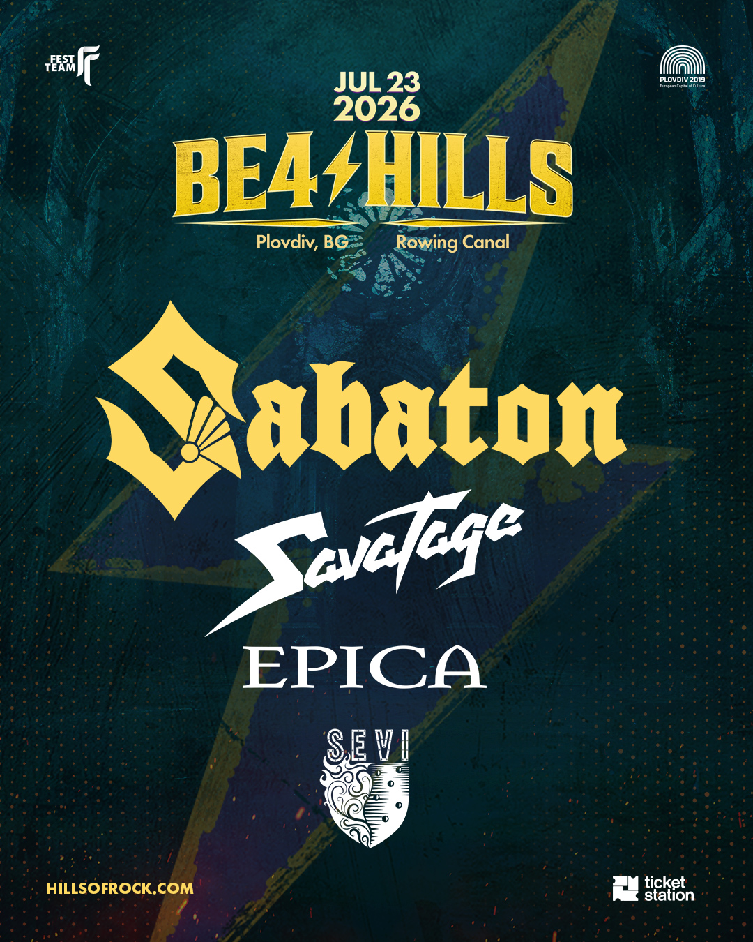 254 На 23 юли 2026, точно ден преди официалния старт на HILLS OF ROCK 2026, сцената на Гребната база в Пловдив ще бъде открита с нов самостоятелен концертен ден – BE4 HILLS (Before Hills). Четири нови групи се включват в програмата на Fest Team за лято 2026 – шведската метъл машина Sabaton, култовите Savatage, нидерландската симфонична банда Epica и българската Sevi ще излязат на сцената в Пловдив на 23 юли в рамките на специалния BE4 HILLS. Този нов пълноценен ден с четири концерта е както независимо събитие, така и възможност за разширено фестивално преживяване за всички, които нямат търпение да стартират HILLS OF ROCK седмицата още по-рано и да направят фестивала четиридневен вместо тридневен. Достъпът до BE4 HILLS е с отделен билет, наличен от вторник (28 октомври), в мрежата на Ticket Station на цена от 99 лв. за тези, които вече имат билет за HILLS OF ROCK 2026 и 120 лв. за всички останали. Юли 2026 превръща Пловдив в най-концентрираната фестивална сцена в страната догодина. Събитията от календара на Fest Team се разгръщат в закономерна последователност – от чисто новия фестивал PHILLGOOD с The Cure, Gorillaz и Moby (от 17 до 19 юли), през специалния концертен ден BE4 HILLS (23 юли), до трите основни дни на HILLS OF ROCK 2026 (от 24 до 26 юли). Гребната база отново събира публика от различни музикални посоки, а програмата за тези десет дни през юли догодина предлага реална възможност за пълноценно, многопластово фестивално преживяване. Шведската банда Sabaton отново ще се качи като хедлайнер на сцената в Пловдив след участието си на HILLS OF ROCK преди точно четири години (на 23 юли 2022 г.). Групата, известна с безпощадната си енергия на живо, се завърна с нов албум „Legends“ преди броени седмици, с нова сценична концепция и с добре познатата си топла връзка с българската публика. Изпълненията на Sabaton винаги предизвикват силен емоционален отзвук у нас, особено с включването на песни като „The Valley of Death“, вдъхновена от българската история. Участието им в BE4 HILLS е част от европейските им дати за 2026 г. Създадени във Флорида през 80-те години, Savatage са една от водещите групи, дали тласък на пауър и прогресив метъла в световен мащаб. Съчетанието между симфонична виртуозност, тежки китарни рифове и драматургичен заряд превръща групата в уникално явление, чийто звук по-късно се развива и в Trans-Siberian Orchestra. Участието им на BE4 HILLS ще бъде единствена по рода си среща с публиката у нас и момент, който свързва поколения фенове на класическия тежък рок. Опера, оркестрална музика, траш, груув, фолк, прогресив, готик, пауър и дет метъл – това е EPICA. Нидерландската група остава сред водещите имена в световната симфонична метъл сцена, известна с мащабните си композиции, вокалната мощ на Simone Simons и умелото преплитане на стилове, които звучат еднакво убедително и в студиен запис, и на живо. SEVI ще представят българската рок сцена на BE4 HILLS. Групата е сред най-активните и последователни български банди в последното десетилетие, с участия на международни фестивали, многобройни клубни турнета и лоялна публика у нас. BE4 HILLS е най-новото събитие в календара на Fest Team – самостоятелно, с отделен билет, но е замислено като естествено разширение на HILLS OF ROCK за онези, които искат да удължат цялата фестивална седмица в Пловдив. Седмото издание на HILLS OF ROCK 2026 застъпва още на следващия ден и е на 24, 25 и 26 юли със забележителна програма с участието на Godsmack, Lamb Of God, Electric Callboy, Black Label Society, Vended, Paradise Lost, Nothing More, Nevermore, Of Mice & Men, Deafheav