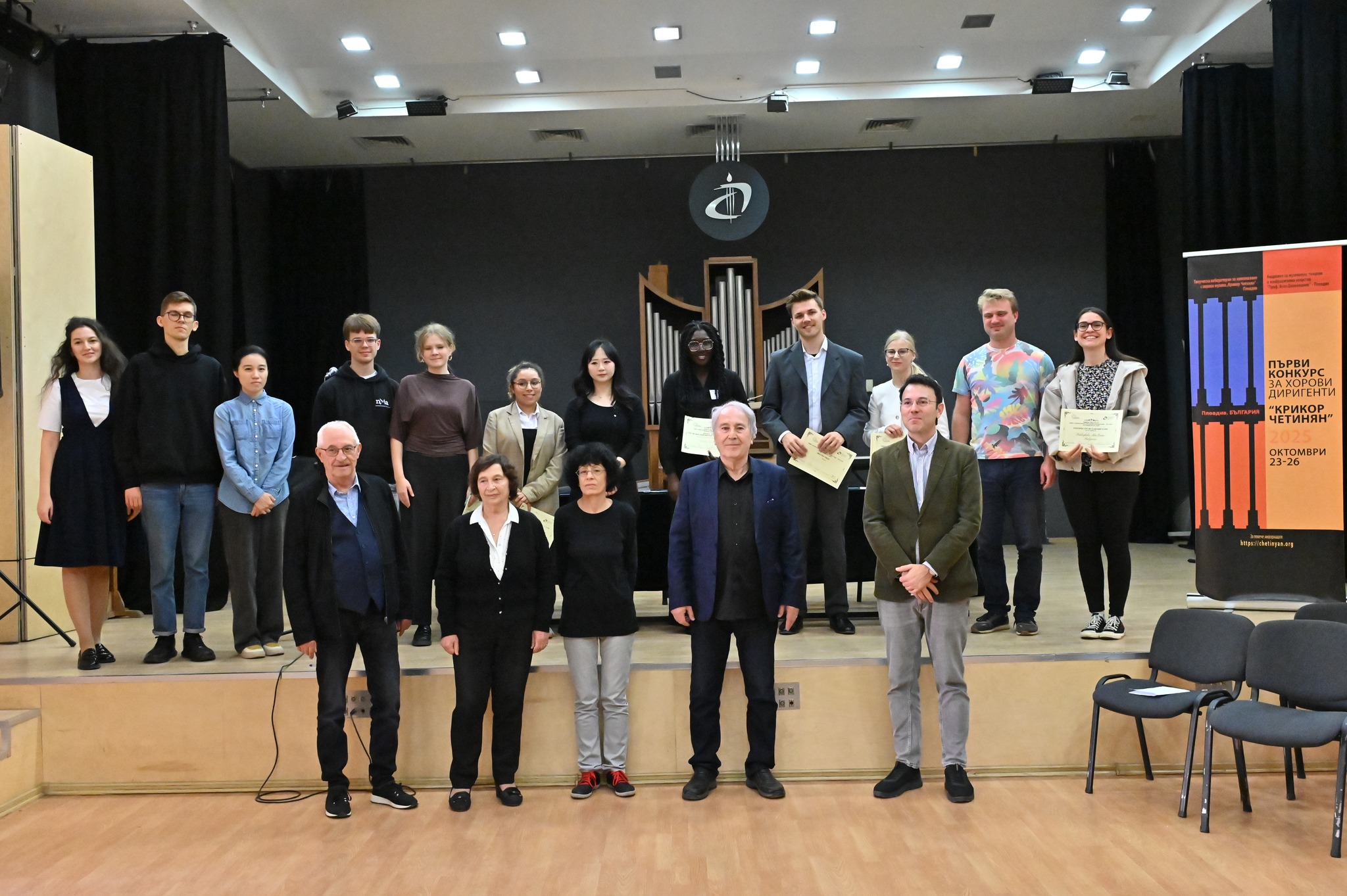 390 Завърши първият по рода си конкурс за хорови диригенти „Крикор Четинян“ в Пловдив, който се проведе в периода 23-25 октомври в Академията за музикално, танцово и изобразително изкуство „Проф. Асен Диамандиев“ – Пловдив. „Инициативата за това събитие има за цел да съхрани спомена за големия български хоров диригент Крикор Четинян и да насърчи младите таланти по пътя на тяхното професионално развитие“, отбеляза артистичният директор на конкурса Кръстин Настев. В надпреварата взеха участие 36 хорови диригенти от цял свят, които преминаха през няколко тура. Авторитетното жури в състав: Фрийдер Берниус (Германия), проф. Златина Делирадева, проф. Мирослав Попсавов, проф. Весела Гелева и Кръстин Настев, избра тримата победители. Лауреати на първото издание станаха: Юдания Ередиа от Куба (Първа награда и Награда на публиката за най-добро изпълнение на песента „Димано, белай кадоно от Иван Спасов), Юлиан Мюлер от Германия (Втора награда) и Ингрит Малеус от Финландия (Трета награда). Наградите бяха осигурени от Фондация „Пловдив 2019“ и АМТИИ – Пловдив. В различните етапи на конкурса участваха три пловдивски хора: в първия тур – Академичен камерен хор „Гаудеамус“, във втория – хор „Детска китка“, а в третия – Камерен хор „Иван Спасов“. „Гордост е за Пловдив да бъде, макар и само за четири дни, център на хоровото изкуство“ сподели Кръстин Настев, който не скри радостта си и от факта, че по същото време друга именита пловдивчанка – оперната прима Соня Йончева – организира престижния конкурс „Опералия“ в София. Може да ви хареса също AL BANO: Да пея на сцена като Античния театър в Пловдив е чест и вдъхновение Ансамбъл „Тракия“ с нов мащабен спектакъл, вдъхновен от река Марица България с пълен национален отбор за Европейското първенство по стрелба с лък в Пловдив Регионален етнографски музей – Пловдив с работилници за мартеници