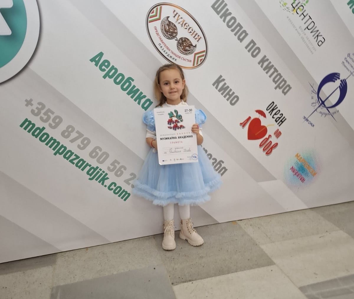 13 Анастасия Ненова от Рогош спечели втора награда във възрастовата група 4–7 години на Международния конкурс „Нота по нота ‘2025“ в Пазарджик. Малката певица от група „Косе Босе“ на детска градина „Пролет“ получи грамота, сертификат за обучение в ателие с ментор Мая Райкова и статуетка. Конкурсът е изключително иновативен в своя формат. Децата преминават през три тура, а тези, които продължат напред, участват в специализирани ателиета, където работят с професионални ментори. Те получават практически насоки за изпълнението на песните, подготвени от техните вокални педагози. Участниците имаха възможност да присъстват и на мотивационни срещи с изявени имена от музикалната сцена. Специален гост на конкурса бе японската композиторка на филмова музика Рейко Намура, а децата се срещнаха и с поп изпълнителя и вокален педагог Стефан Илчев. Анастасия премина блестящо през всички турове и спечели сърцата на висококвалифицираното жури начело с проф. Етиен Леви – със своя талант, харизма и музикалност. Въпреки че бе най-малката сред участниците, тя се превърна в истински талисман на конкурса. „Ей, мъниче, ти разби журито!“, възкликна менторката ѝ Мая Райкова още след първата им работа в ателието. „Горди и щастливи сме, че в нашата детска градина растат толкова талантливи деца, които прославят името на институцията и достойно се състезават във форуми от най-висока класа. Респект към труда на Ая, нейното постоянство и подкрепата на нейните родители!“, коментираха от ръководството на детската градина, които поздравиха малката певица. Те благодариха и на преподавателя й по музика Любка Илчева, която има основен принос за успеха на малката Ая. Поздрави към Анастасия Ненова за нейния впечатляващ успех на конкурса „Нота по нота ‘2025“ отправи и кметът на Община Марица Димитър Иванов. „Този резултат е доказателство, че когато талантът срещне подкрепа, труд и вдъхновение, децата постигат високи постижения. Гордея се, че в нашите детски градини растат млади таланти, които развиват своите способности и прославят Община Марица. Ние винаги ще подкрепяме усилията на децата и техните наставници, защото инвестицията в младите е инвестиция в бъдещето. Пожелавам на Анастасия и всички деца в общината смело да следват мечтите си. Ние сме до вас и вярваме във вашия успех!“, заяви кметът. Може да ви хареса също Издателство Летера представя книга на д-р Стефан Шивачев за арх. Пиетро Монтани Детско творчество в светлината на традицията: РЗК-Пловдив открива Занаяти с бъдеще Международният радио фестивал Тримонтиада кани на Коледен концерт с шедьоври от Бах Денят на тангото: Емоционален концерт с вход свободен в Епископската базилика в Пловдив