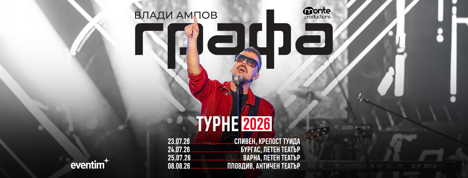 24 Графа обяви датите за летните си концерти, които ще преминат през някои от най-красивите открити сцени в България. Турнето започва на 23 юли в крепост „Туида“ в Сливен, продължава на 24 юли в Летен театър – Бургас и на 25 юли в Летен театър – Варна, а финалът е на 8 август на сцената на Античен театър, Пловдив. Новата програма на турнето е изградена като пътуване през емоцията на песните на обичания български певец и композитор. Тя започва в по-интимна атмосфера – с глас, пиано и китара и песни като „Влюбени сълзи“, „Страничен наблюдател“ и „Черен гранит“, а по-късно се разгръща с музикантите от бандата и едни от най-обичаните хитове – “Drama Queen”, „Слънце в очите ти“, „Ако има рай“, “Невидим”, „Искам те“, „Крадена любов“, „Малкият принц“, „Никой“ и „Давам вичко за теб“. На сцената Графа ще бъде с музикантите си, които със своята енергия и майсторство допринасят за силното живо звучене на концертите. Специален акцент около турнето е и книгата „Графа Live“, която Графа представи лично с концерт в клуб в сърцето на София. В нея той допуска читателите по-близо до своя свят – разказва за сцената, музиката и хората зад годините концерти, за вдъхновението, съмненията и моментите, които оформят един артист. По време на турнето зрителите ще могат да открият книгата и на място. Билетите са в продажба в мрежата на Ивентим. Може да ви хареса също Ретроспективна изложба в Пловдив показва света на Анастас -70 години дух и мистика Евгени Генчев и приятели гостуват в Пловдив с „Валсът на розите“ Изложба „Настроения“: Даниела Стоянова и Никола Певичаров – живопис, графика и рисунки София филм фест в Пловдив отново с филми от най-големите световни фестивали