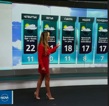 393 Елина Бека, доведената дъщеря на популярния шеф Иван Манчев, вече работи като синоптичка в Нова тв, пише в. „Уикенд”. Блондинката все още е студентка, но вече се е уредила на сладка работа. Според запознати тя е назначена на пробен срок, а заплатата й е символична – около 2000 лева. Работата в Нова телевизия обаче гарантира бърза популярност и възможност да се изкарват допълнителни доходи като инфлуенсър. Красавицата завърши гимназия преди 3 години. Тя беше съученичка с дъщерята на фолк певицата Анелия. Шеф Манчев беше уредил Елина в предаването „На кафе“, където известно време тя се подвизаваше като репортерка. Същевременно Бека помага на майка си в бизнеса с недвижими имоти и се изживява като брокер. Елина от години иска да е под светлините на прожекторите. Блондинката е наследила красотата на майка си Ива Бека, която от няколко години е жената до шеф Манчев. Младата госпожица вече има силикон в бюста и филъри в устните, досущ като майка си, но и преди тези интервенции Елина бе красавица. Може да ви хареса също Андреа и Теди Александрова се изпокараха заради Емрах Силвена Роу: Гледам да се боря със стреса Лъвове ще действат смело, а трудности престоят за Козирозите Трагичен празник е!