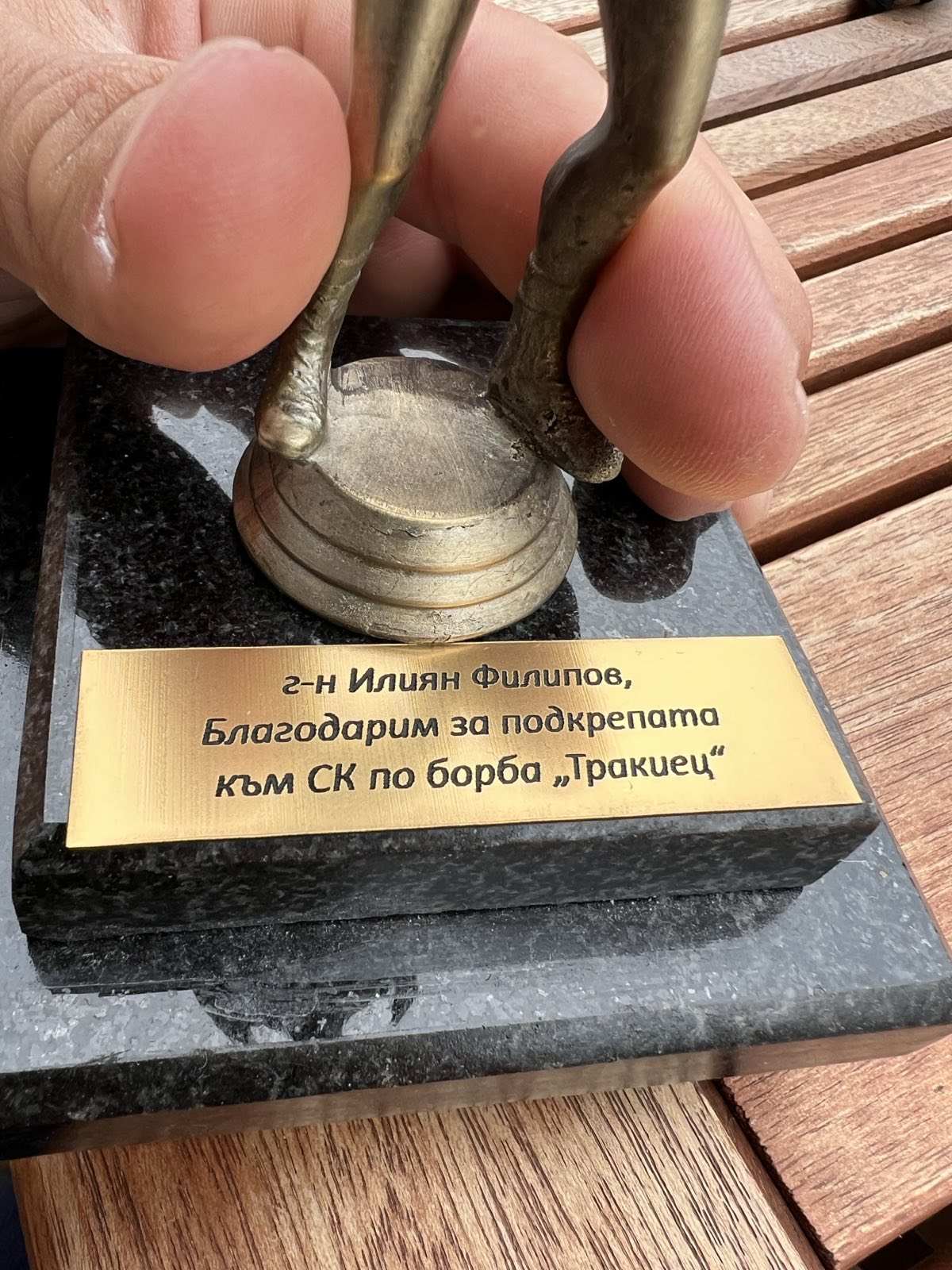 238 ПИМК получи днес плакет от Спортен клуб по борба „Тракиец“. Така клубът благодари за оказваната подкрепа. СК „Тракиец“ бе възроден преди 10 години от Даниел Димитров, а залата до стадион „Христо Ботев“ е изцяло реновирана, за което принос има и ПИМК. На последното държавно лично отборно първенство състезатели на „Тракиец“ спечелиха два златни, сребърен и бронзов медали. ПИМК ще продължи да помага както на СК „Тракиец“, така и на други спортни клубове. Може да ви хареса също КТ „Подкрепа“ искат Йотова да наложи вето върху промените в Кодекса за социално осигуряване НДК светна в синьо в навечерието на Международния ден в памет на загиналите служители на реда – 7 март Избирателите могат да направят проверка дали са в списъците на лица, подкрепящи регистрацията на партии и коалиции в изборите Кандидат-шофьорите ще карат задължително и през нощта