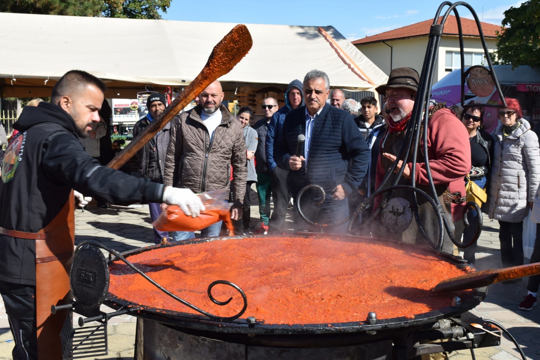 97 Аромат на печени чушки, домати, моркови и подправки се носеше на площада в Калековец. Момичета и момчета белеха и режеха местните продукти и чакаха екипа на шеф Ути Бъчваров да пристигне и открие традиционния Празник на лютеницата в Община Марица. Телевизионният водещ пристигна със своя специален тиган за приготвяне на любимата на всички разядка. Този път на помощ бе донесъл и огромна мелачка за зеленчуците. Кметът на Калековец Георги Вълков посрещна Ути Бъчваров и неговия помощник Росен Митков, които се захванаха да мелят продуктите и да ги слагат в тигана. Докато лютеницата се изваряваше за всички гости на празника, самодейните състави от читалище „Пробуда – 1927 г.“ показаха красотата на песните и танците от Тракия и Шопския край. Фолклорната програма на малчуганите от ДГ „Весела“ трогнаха Ути, той остави огромната бъркалка и ги поздрави. „Ентусиазмът на тези прекрасни, слънчеви деца, както и на съставите ще дадат толкова вкусна енергия на нашата лютеница, че всички ще си оближете пръстите“, каза популярният готвач. След това допълни, че колелото продължава да се върти и смила обелените чушки и моркови, които ще се присъединят към доматите. „Слага се важна добавка, която да уплътни лютеницата. Така ще дадем още по-специален вкус на доматите, расли в района. Всяко село трябва да има собствена рецепта. Всичко става истинско, защото е приготвено с любов. Една от най-важните съставки е червеният пипер, а след добавянето му започва голямото бъркане, което уплътнява и сгъстява сместа“, допълни Ути. Тогава се включи и кметът на Община Марица Димитър Иванов, на когото водещият позволи да сложи черен пипер и кимион в лютеницата и подчерта, че дори на Роската не позволява да добавя специалните съставки. След това празникът бе официално открит от кмета Иванов, който приветства жителите на Калековец и гостите на феста. „Продължаваме традиция, която започнахме преди три години с Ути Бъчваров. Първият празник в Община Марица направихме в моето родно Маноле. Тогава „Манолски славеи“ изпяха песента „Бяла Стана“, докато готвачите приготвяха лютеница, и тя стана емблема на апетитната разядка. Всяка година фестът се провежда в различни села. А тази вие, калековци, ще измислите име и за вашата. Правенето й е стар обичай и има различни рецепти във всички краища на страната. Дори всяко домакинство си прави своя апетитка“, посочи Иванов. Той допълни, че има идея през февруари да организира Празник на сланината. След това заедно с кмета на Калековец Георги Вълков и с Ути Бъчваров дегустираха 12 разядки, за да определят победителите в конкурса за най-добра домашна лютеница. Изборът бе труден, защото трябваше да опитат различни видове – едросмляни, пасирани, айвари, с повече моркови или патладжан, сладки или богати на подправки и чесън. Накрая журито единодушно обяви за най-добра домашна лютеница, приготвената от Веселина Кънчева разядка. Тя получи голяма бъркалка и грамота от Димитър Иванов, като поздрави майсторката и й пожела да продължи да приготвя страхотна лютеница. На второ място се класира продуктът на Галина Сумова, която получи глинен гювеч, а на трето бе избрана апетитната разядка на Костадин Кънчев, на когото подариха глинени подноси. След това Ути Бъчваров обяви, че лютеницата е готова, а неговият екип я раздаде на присъстващите. Под зв