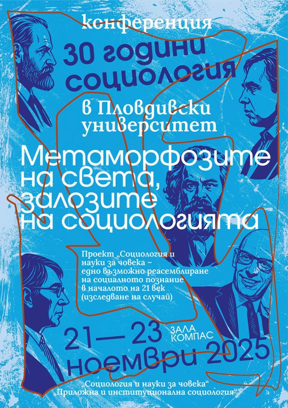 9 С мащабна тридневна конференция социолозите от Философско-историческия факултет на ПУ „Паисий Хилендарски“ ще отбележат 30-годишнината от създаването на специалността във висшето училище. Форумът е под надслов „Метаморфозите на света, залозите на социологията“, а организатор е Катедра „Социология и науки за човека“ заедно с Катедра „Приложна и институционална социология“. Откриването на конференцията е на 21 ноември от 13.30 часа в зала „Компас“ на територията на Ректората на ПУ, а малко след това там ще започне кръгла маса с участието на учредителите на специалността Мария Шнитер, Деян Деянов, Цветозар Томов, Андрей Райчев, Иван Чалъков, Кольо Коев. Форумът е разделен на сесии, като целият втори ден ще бъде посветен на актуални изследвания по темата „Социоанализата като критическа наука“, в който участие ще вземе екип от катедра „Социология“ в СУ „Св. Кл. Охридски“. Конференцията е и заключителното събитие от проекта „Социология и науки за човека – едно възможно реасемблиране на социалното познание в началото на 21 век (изследване на случай)“, подкрепен от Фонд Научни изследвания. В Пловдивския университет специалност „Социология” стартира през 1995 г. в рамките на Филологическия факултет. От 2004 г. обучението по социология става част от тогава формиралия се Философско-исторически факултет. Може да ви хареса също МС реши: 31 януари 2025 г. и 2 януари 2026 г. ще са неработни Минималната учителска заплата ще е 1089 евро от 1 януари Финансов анализатор: Не очаквам поскъпване на горивата Слабо земетресение край Димитровград