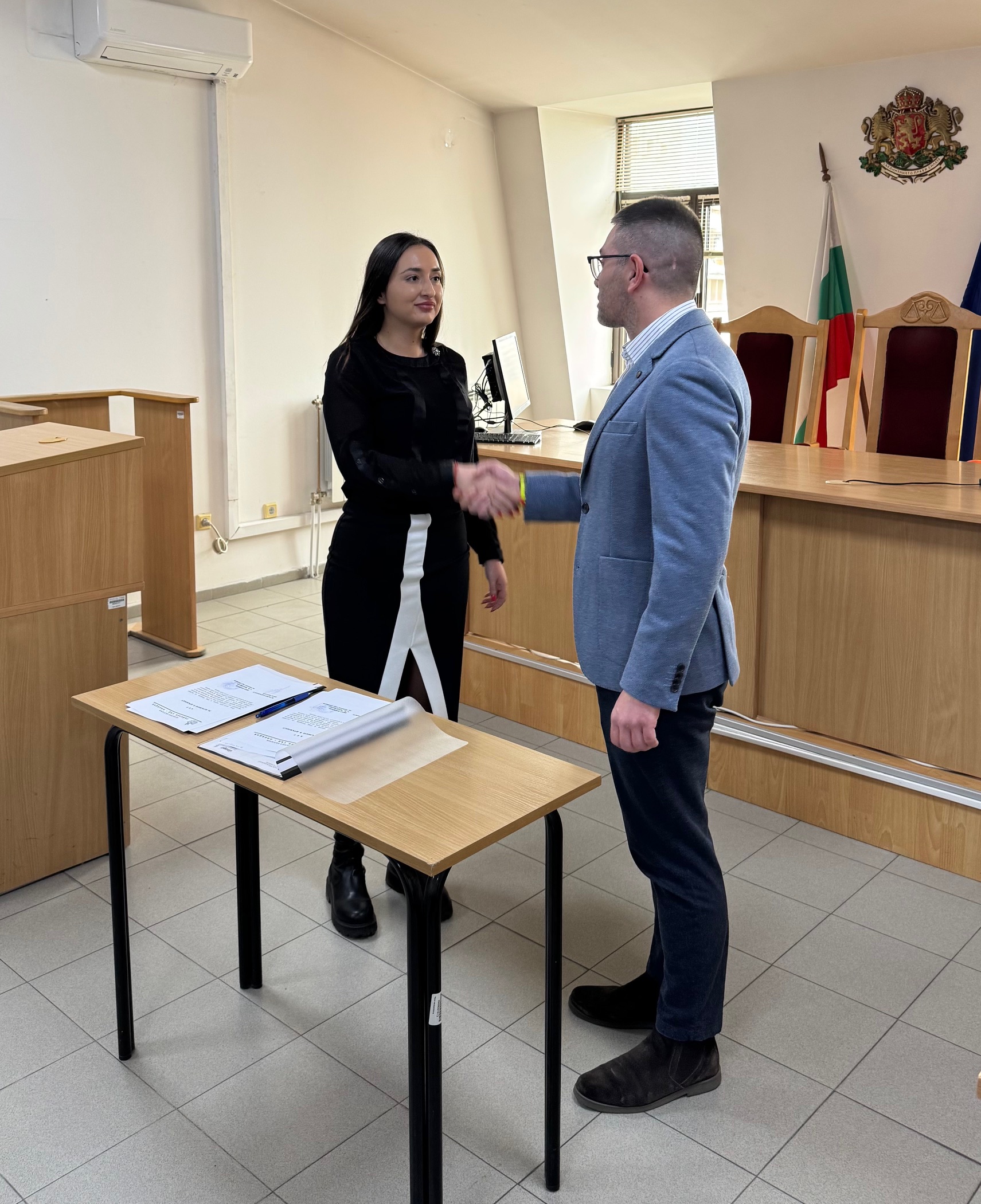 70 Днес, 05.01.2026 г., в сградата на РАЙОНЕН СЪД – ПЛОВДИВ се състоя официална церемония по встъпване в длъжност „Съдия“ в Районен съд – Пловдив на младшите съдии Руска Атанасова Андреева и Цвета Боянова Борисова, назначени в изпълнение на Решение на Съдийската колегия на ВСС по протокол № 36 от 09.12.2025 г. Новите магистрати подписаха Акт за встъпване в длъжност „Съдия“ в Районен съд – Пловдив в присъствието на И.Ф. Председателя на РС – Пловдив г-н Иван Бекяров и съдиите от РС – Пловдив. Съдия Руска Атанасова Андреева е завършила „Право“ в СУ „Св. Климент Охридски“ – гр. София. Започва професионалната си кариера като адвокат и като такава работи за период от две години и осем месеца. От 2022 г. продължава кариерата си като „младши съдия“ в Окръжен съд – Пловдив, като от месец юли 2024 г. със заповед на Председателя на ОС – Пловдив е командирована да изпълнява длъжността „съдия“ в Районен съд – Пловдив, където работи и до настоящия момент. От днес вече е част от редиците на Районен съд – Пловдив и ще правораздава в „Гражданско отделение“. Съдия Цвета Боянова Борисова също е завършила СУ „Св. Климент Охридски“ – гр. София. След обучението си в НИП е назначена на длъжност „младши съдия“ в Окръжен съд – Пловдив, където е работила до днес, когато официално става част от съдийския състав на „Гражданско отделение“ на РС – Пловдив. Съдиите Андреева и Борисова получиха поздравления за встъпването им в длъжност, пожелания за здраве, удовлетворение от работата и професионални успехи от и.ф. Председателя на Районен съд – Пловдив г-н Иван Бекяров и от присъстващите на церемонията съдии от Районен съд – Пловдив. Съдия Андреева благодари на колектива в Районен съд – Пловдив за подкрепата в периода на работата й като командирован съдия, а съдия Борисова сподели, че се радва, че ще бъде част от колектива на Районен съд – Пловдив. Може да ви хареса също Отиде си журналистът Николай Стефанов АББ: Обмяната в евро в банките се извършва без лимит, за суми над 30 000 лева изисква предварителна заявка Близо 200 смелчаци „спасиха“ кръста на Йордановден в община „Родопи“ Оранжев и жълт код за голямо количество валежи утре