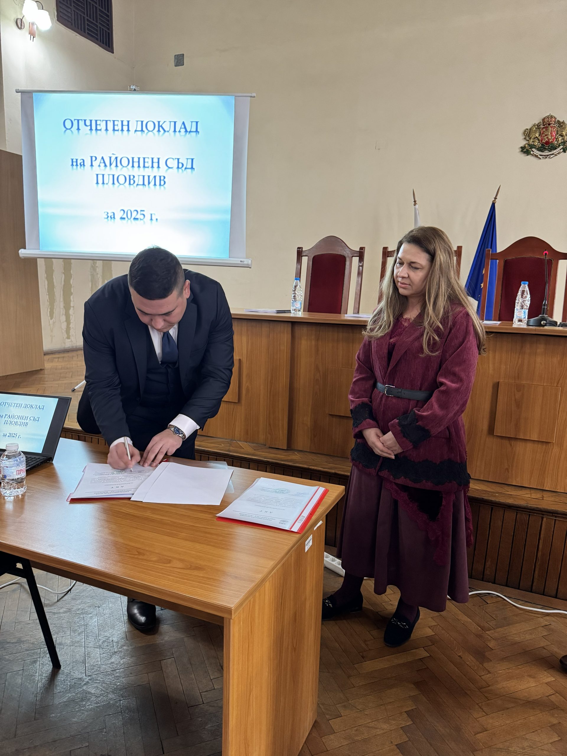 32 На тържествена церемония днес, 13.02.2026 г. съдия Панайот Велчев официално пое функциите на Административен ръководител – председател на Районен съд – Пловдив. Той подписа Акт за встъпване в длъжност в присъствието на досегашния и.ф. Председател на РС – Пловдив съдия Иван Бекяров, на Председателя на Апелативен съд – Пловдив г-жа Миглена Тянкова, Председателя на Административен съд – Пловдив г-жа Мариана Шотева, Председателя на Окръжен съд – Пловдив г-жа Розалия Шейтанова, на Административния ръководител на РП – Пловдив г-н Петър Петров и съдиите от Районен съд –Пловдив. Изборът на съдия Панайот Велчев за председател на Районен съд – Пловдив стана факт след единодушно решение на Съдийската колегия на Висшия съдебен съвет на 27 януари 2026 г. Основен мотив за кандидатурата му бе силната колегиална подкрепа – той бе номиниран от мнозинството от своите колеги в съда в резултат на неговите професионални и морални качества. Съдия Панайот Велчев е магистрат с над 13 години стаж в органите на съдебната власт и е с придобит ранг в съдебната система „съдия в Апелативен съд“. Завършил е висшето си юридическо образование в Пловдивския университет „Паисий Хилендарски“. След обучението си в НИП е назначен на длъжност „младши съдия“ в Окръжен съд – Пловдив, като за период от време е бил командирован да изпълнява длъжността „съдия“ в РС – Асеновград. От 2015 г. официално става част от съдийския състав на РС – Пловдив, където и до днес правораздава в „Наказателно отделение“ . В словото си при встъпването в длъжност новоназначеният председател потвърди решимостта си да изпълни целите, заложени в концепцията му, изложена пред Висшия съдебен съвет и подчерта, че за него Районен съд – Пловдив не е просто място на работа, а най-вече общност от професионалисти, които вземат отговорни решения. Той акцентира върху значението на колегиалността, приемствеността и екипната работа, необходими в отговор на високите обществени очаквания към съда и заяви намерение да запази и надгради добрите практики, създадените условия за работа и постигнатите високи резултати в съда. Съдия Велчев получи поздравления от административните ръководители на Апелативен съд – Пловдив, Административен съд – Пловдив, Окръжен съд – Пловдив и на Районна прокуратура – Пловдив и присъстващите съдии и служители от Районен съд – Пловдив, които му пожелаха здраве, кураж и успешен мандат. Може да ви хареса също Редица авиокомпании анулират полетите си до и от страни в Близкия изток Слънчево време утре Понижение в цените на някои основни хранителни стоки и на повечето от зеленчуците на борсите у нас през седмицата Хороскоп за днес: Рак- чувствате се по-сигурни в собственото си присъствие, дева – краят на месеца носи усещане за подреденост