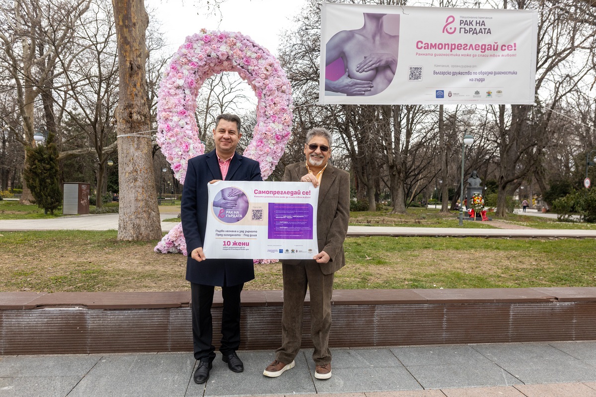 27 Впечатляваща арт инсталация – пътуващата розова панделка, символ на информационната кампания „Самопрегледай се! Ранната диагностика може да спаси твоя живот!“, бе открита днес в Пловдив на пл. „Централен“. Кампанията е посветена на превенцията и ранната диагностика на рака на гърдата. По време на събитието организаторите от Българското дружество по образна диагностика на гърда призоваха жените да отделят време за себе си и своето здраве – както чрез ежегодни профилактични прегледи при специалист, така и чрез ежемесечен самопреглед. Те подчертаха, че основната цел на инициативата е не само да повиши информираността, но и да вдъхне увереност, че ранната диагностика дава реален шанс за пълно излекуване. „Искаме всяка жена в България да разбере, че профилактичният преглед при специалист по образна диагностика и допълващият самопреглед могат да спасят живота ѝ. Искаме да научим всяка жена, че ежемесечно трябва да се самопреглежда, защото колкото по-рано е открито заболяването, толкова ние лекарите сме по-полезни“, заяви на откриването на панделката д-р Йордан Спирдонов, член на управителния съвет на Българското дружество по образна диагностика на гърда и инициатор на кампанията. Той припомни, че всяка година в България се диагностицират над 4000 нови случая на рак на гърдата, като едва около 12% от тях се откриват в ранен стадий. Именно тогава успеваемостта на лечението достига до 97%. „Това ни напомня колко важна е ранната диагностика и колко много още можем да направим заедно. Защото в живота на всеки мъж има любими жени – майки, сестри, съпруги, дъщери, приятелки. До всяка от тях трябва да достигне простото, но жизненоважно послание: ракът на гърдата е лечим, когато бъде открит навреме“, заяви Илия Тасев, директор на дирекция „Обществено здраве“ към Министерството на здравеопазването. „Създадохме и филм, с който да премахнем страха и погрешното схващане, че това заболяване е фатално и че е нелечимо. Лечимо е! И колкото по-рано го открием, вероятността да бъде напълно излекувана една жена се увеличава“, допълни още д-р Спирдонов. На откриването присъстваха представители на държавни и общински институции, сред които директорът на дирекция „Обществено здраве“ към Министерството на здравеопазването Илия Тасев, представители на дирекция „Здравеопазване“ в Община Пловдив , актрисата от Драматичен театър Пловдив Патриция Пъндева и др. Събитието е част от националната информационна кампания „Самопрегледай се! Ранната диагностика може да спаси твоя живот!“, организирана от Българското дружество по образна диагностика на гърда с подкрепата на Министерството на здравеопазването, Столичната община, УМБАЛ „Царица Йоанна – ИСУЛ“, Националния дворец на културата и Община Пловдив. Ранното откриване на рака на гърдата – чрез редовни профилактични прегледи и самопреглед – остава най-ефективният начин за спасяване на човешки животи. Кампанията „Самопрегледай се!“ стартира през миналата година в цялата страна с редица инициативи – прожекции на документалния филм „Цвете в буря“, който разказва истинските истории на пет жени, преминали през заболяването; разпространение на информационни материали в болници, ДКЦ и образни отделения, кампания в столичното метро. През 2025-а пред пилоните на НДК в София розовата панделка стартир
