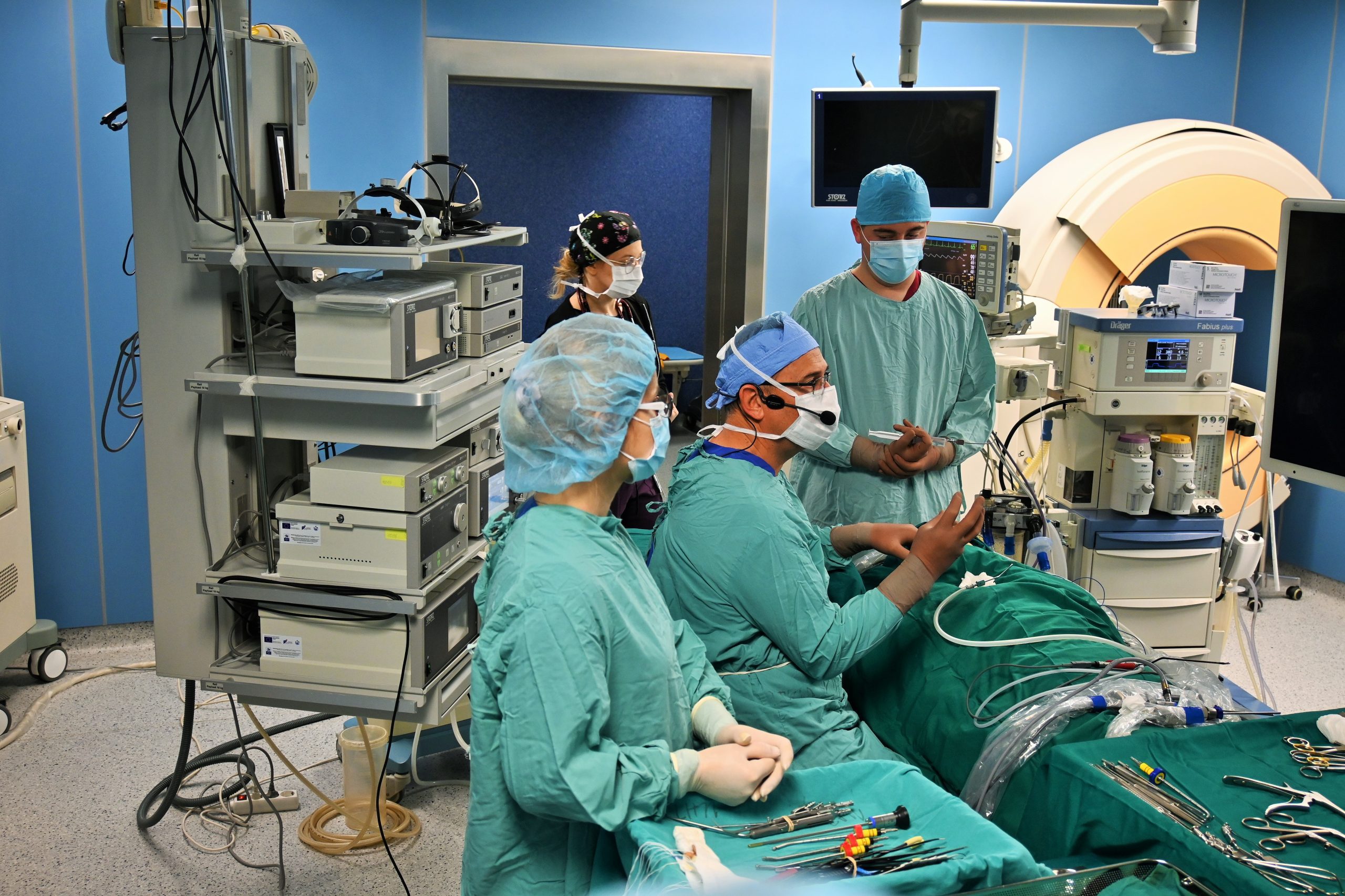 360 62-годишна жена със сериозно орбитално усложнение на хроничен риносинуит и назална полипоза след дългогодишно затруднено дишане беше успешно оперирана в Интегралния център към УМБАЛ „Свети Георги“ ЕАД – Пловдив. Хирургичната интервенция бе извършена от проф. д-р Карен Джамбазов – изпълнителен директор на университетската болница, ръководител на Катедрата по ушно-носно-гърлени болести към Медицински университет – Пловдив и ръководител на обучението по миниинвазивна и роботизирана хирургия за студенти-медици. На пациентката бе извършено миниинвазивно ендоскопска ендоназална хирургия през носа. Проблемът е идентифициран чрез високоспециализирани изследвания, включително компютърна томография с висока разделителна способност и ядрено- магнитен резонанс (ЯМР), които осигуриха детайлна диагностика на синусите и зоната около очите. Жената страда от затруднено носно дишане от дълги години, оперирана е преди близо 2 години по повод хроничния риносинуит и назалната полипоза. Проблемите започват отново преди около година, когато тя забелязала подутини в областта на очните ябълки (двустранно), които нараствали с времето. При поглед наляво, пациентката имала двойно виждане, но тези оплаквания изчезвали в покой, когато не активирала мускулите на очите. Операцията на живо бе наблюдавана от студенти от Асоциацията на студентите-медици – гр. Пловдив, в рамките на второто издание на Националната студентска академия по миниинвазивна и роботизирана хирургия. Модератор на събитието беше д-р Александрина Топалова-Шишманова, утвърден специалист в Клиниката по УНГ болести. Студентите имаха възможността да наблюдават операцията в реално време, извършена от проф. Джамбазов и ст. мед. специалист Щерева. Събитието събра над 50 студенти по медицина и подчерта важността на иновациите в медицинското образование, като утвърди Пловдив като важен център за подготовка на бъдещи специалисти в областта на високотехнологичната хирургия. Благодарение на екипа на проф. Джамбазов и прецизната хирургична интервенция през носа с използване на сложна ендоскопска техника, пациентката вече се възстановява успешно. Може да ви хареса също С 33-метрово виенско колело и най-големият батут на Балканите Plovdiv Land се завръща в „Тракия“ Важно за гражданите: Общинската и районните администрации в Пловдив ще работят извънредно заради изтичащи срокове за изборите на 19 април Класика за Великден в район Централен Бюрото по труда в Пловдив обяви 480 свободни работни места, 49 са за висшисти