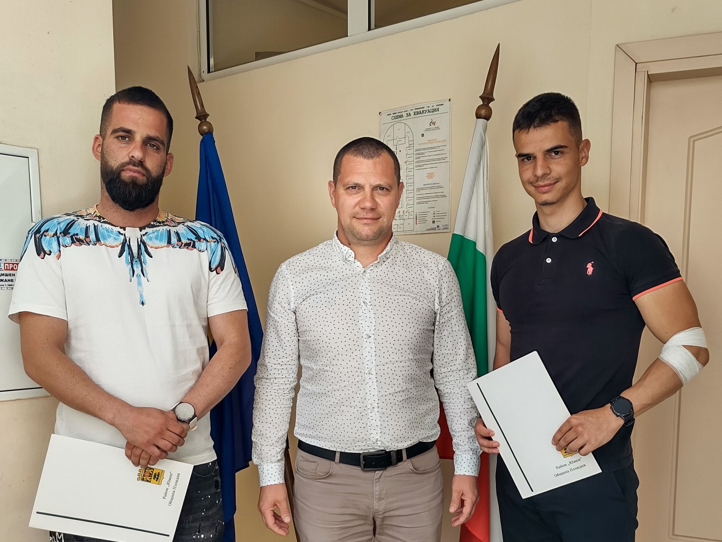 1,8K Кметът на район „Южен“ Атанас Кунчев връчи благодарствени писма на двама млади мъже, организирали прекрасна благотворителна акция за Великден. Иван Бернардов и Цветин Каров осигуриха и раздадоха 177 хранителни пакета на социално слаби лица, на деца лишени от родителска грижа в ЦНСТ „Майка Тереза“ и на живеещите в Дома за стари хора „Свети Василий Велики“. Инициативата се проведе на 17 и 18 април – дни преди най-светлия празник Възкресение Христово. „Да направиш добро е най-чистата проява на човечност! Благодаря ви, че сте от истинските и достойни хора, които даряват радост, щастие и надежда в изключително трудни за всички ни времена. Запазете своята вяра в доброто и я предавайте на другите около Вас“, обърна се към двамата кметът Атанас Кунчев, като им връчи благодарствени писма от район „Южен“. Иван Бернардов е на 28 години, по професия готвач, а в свободното време ходи на фитнес и е футболен съдия. Цветин Каров е на 23 години, студент по финанси към Пловдивски университет. От 4 години е старши специалист към ТД на НАП Пловдив. В свободното си време се занимава с футбол и фитнес. Може да ви хареса също График за миенето на пловдивските улици от 06 до 10 април Нов проект за саниране изпълнява Община Пловдив в район „Източен“ Пловдив с рекордни цени за нощувки: 3300 евро за две вечери Община Пловдив санира 113 апартамента в поредния висок блок ул. „Лотос“ №1 по Плана за възстановяване и устойчивост