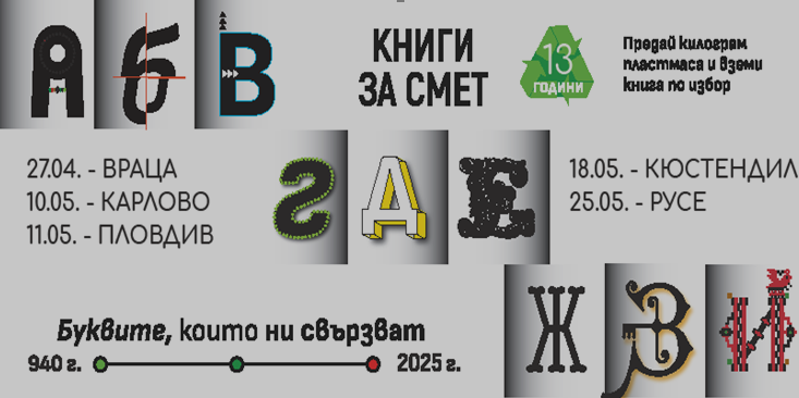 285 На 11 май /неделя/ от 10:00 до 13:00 ч. на площад „Централен” до Военния клуб за поредна година ще се проведе кампанията „Книги за смет”. Община Пловдив е дългогодишен домакин на инициативата. „Буквите, които ни свързват“ е мотото на кампанията, посветено на нашата азбука. Под това мото всяка година една буква от азбуката се представя под формата на специално издание. Така участниците имат възможност да съберат цялата азбука през следващите години. Тази година сред новите заглавия са „Ето ти седем – италиански приказки“ и „Жертва на държавната лотария“ Те допълват миналогодишните букви „А“, „Б“, „В“, „Г“ и „Д“ от колекционерската поредица на издателство Smart Books. Всеки, който донесе поне 1 килограм годна за рециклиране пластмаса, ще получи безплатна книга. По този начин ще има възможност да обогати личната си библиотека и в същото време да помогне за опазването на природата, като се включи в създаването на по-чиста и устойчива среда за живот. Всеки участник има право на една книга, независимо от количеството предадени отпадъци. Пластмасата ще бъде рециклирана от „ЕКОПАК България“ – традиционен партньор на инициативата. Дирекция „Опазване на околната среда“ при Община Пловдив приканва всички желаещи да се включат в кампанията и заедно да обединим усилията си за една по-чиста, зелена и устойчива община. Може да ви хареса също Велошествие „Тракия“ 2026 събра стотици участници ГЕРБ отбеляза Лазаровден в районите „Северен“ и „Тракия“ Община Пловдив ще санира нов блок в „Южен“ по Плана за възстановяване и устойчивост Въвеждат защитен ляв завой на ключово кръстовище в Пловдив