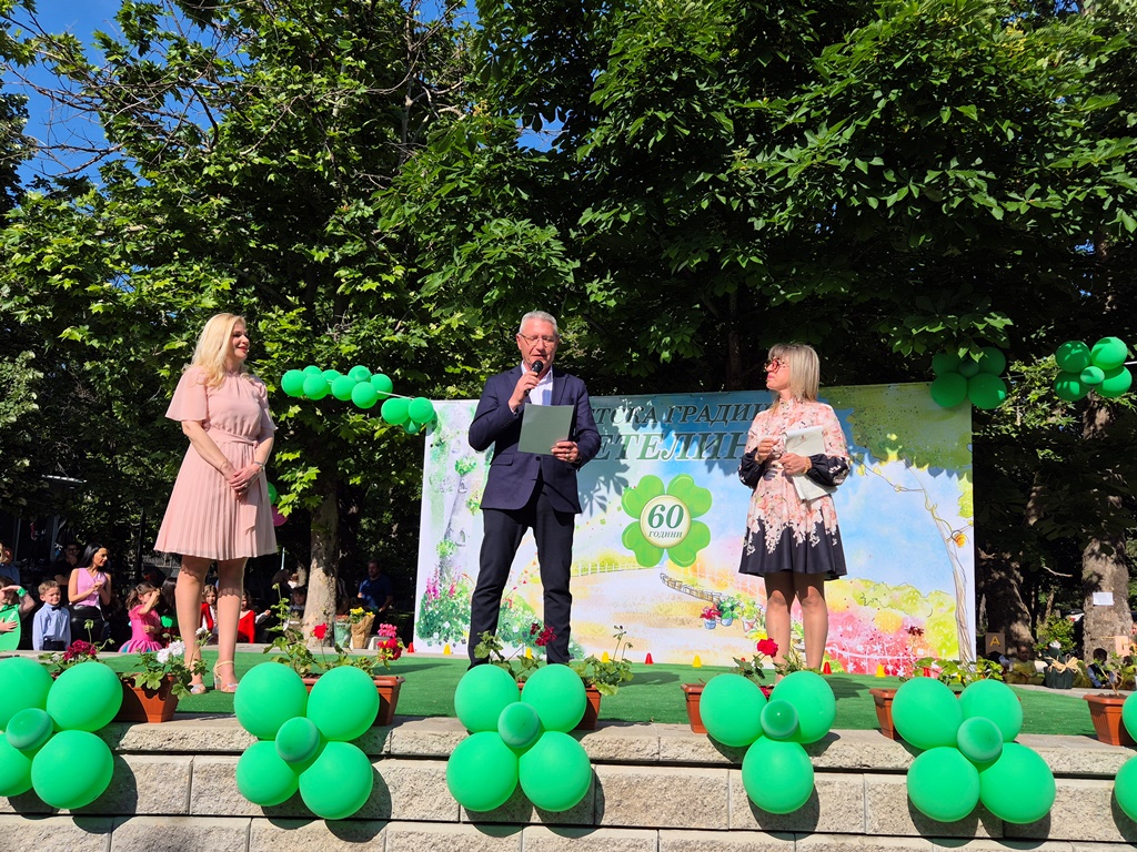 535 С прекрасен празник в парк „Каменица“ ДГ „Детелина“ отбеляза своя 60-ти рожден ден. Водеща на събитието беше Ася Антонова, позната като Ася от страната на талантите. Възпитаниците от детската градина приветстваха присъстващите с танц, символ на доброто и цветята. Директорът Анастасия Караманолева поздрави всички официални гости, родители, деца и целия й екип. „Да работиш с децата е не само мисия, а вдъхновение от което всеки ден получаваш неизчерпаема енергия да даряваш доброта и да виждаш, че всяко усилие в образованието на децата си заслужава“, сподели Караманолева от сцената. Емил Русинов – кмет на район „Източен“, поздрави директора, като поднесе поздравителен адрес и почетен знак на район „Източен“. “Щастлив съм да Ви поздравя по случай 60-годишнината от създаването на ДГ “Детелина“. Гордеем се с Вашите успехи, резултат на инициатива и новаторство за придобиване на специални знания в предучилищна възраст. Бъдете живи и здрави още много години в изпълнение на най-важната мисия в полза на децата и тяхното образование“, пожела Русинов. След това паркът се превърна в истинска приказка от таланти. Със специално подготвена хореография всяка група на ДГ „Детелина“ зарадва публиката с поздрав от сцената. Малчуганите представиха песни и танци – испански, български фолклорни и други. С изпълнението на “Песен на доброто” специален поздрав оправи вокалната група на ОУ „Васил Левски“ с музикален ръководител Янислав Иванов. На финала децата изпратиха своето послание „Доброто започва от нас“, изписано с цветни букви на сцената. Специална торта с формата на детелина беше поднесена като подарък за всички деца от детската градина. Може да ви хареса също Пловдивчанка се зарази с чикунгуня след почивка на Сейшелите Бизнесът за Пловдив се среща с кмета Костадин Димитров Военният духов оркестър на СКСО с тържествен концерт пред Община Пловдив Посланикът на Косово у нас впечатлен от бизнес средата в Пловдив