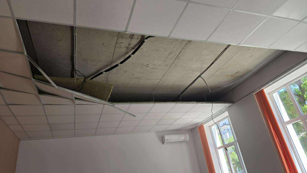 538 Част от окачен таван на кабинет в Музикалния корпус на СУ „Любен Каравелов“ падна днес по време на час на 10б клас. Няма пострадали, увери директорът на учебното заведение Ивайло Димов. Преподавателят реагира адекватно и бързо, като извежда веднага учениците. Директорът своевременно информира експертите от строителната дирекция на Община Пловдив и РУО. Кметът на Пловдив Костадин Димитров разпореди проверка на случая и оглед на всички помещения. До тогава учебните кабинети няма да се използват, а учениците ще провеждат часове в други зали. На място освен кмета Костадин Димитров са ресорният заместник-кмет на Община Пловдив Владимир Темелков и кметът на район „Централен“ Георги Стаменов. На терен вече са и представители на фирмата, извършила строително-ремонтните дейности, тъй като сградата все още е в гаранция. Новият учебен корпус на ул. „Марагидик“ бе реконструиран по време на изминалия управленски мандат по европейски проект. Може да ви хареса също Емил Русинов домакин на съвещание по обхвата на децата в Източен Инцидент с коледната украса в центъра на Пловдив Два варианта за повишаване безопасността на движението по Околовръстния път на Пловдив предлага АПИ Стани Дядо Коледа за един ден – зарадвай дете в нужда 3, инициативата стартира отново в район „Тракия“