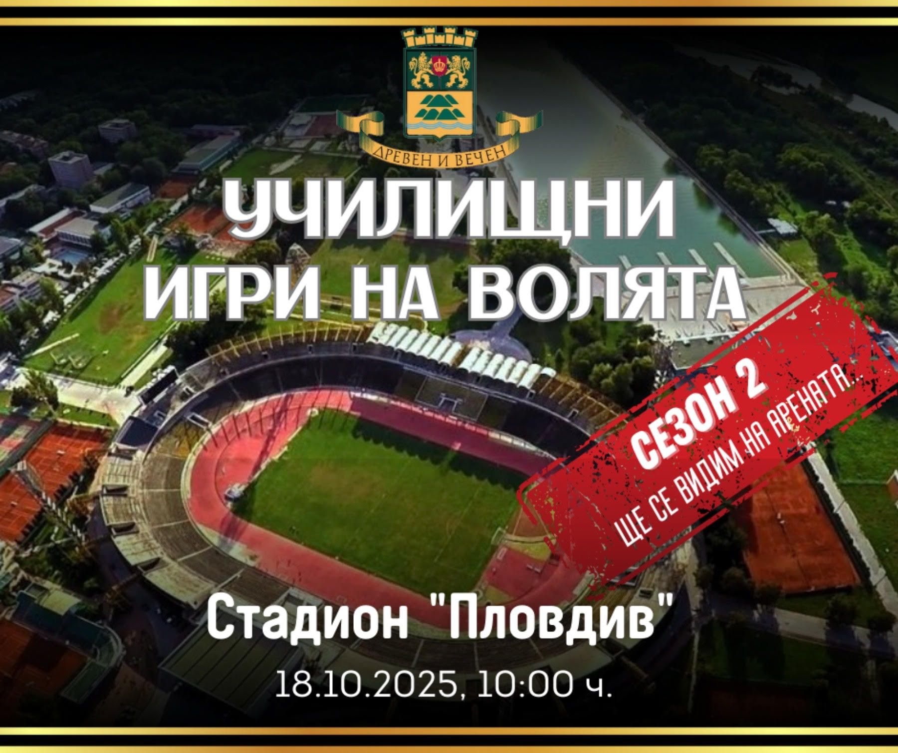 537 Тази събота от 10:00 часа на стадион „Пловдив“ ще бъде даден стартът на втория сезон на „Училищни игри на волята“ – състезанието, което обединява учениците на Пловдив в духа на спорта, приятелството, екипната игра и волята за победа. Тази година в инициативата се включат 450 деца от 28 училища, които ще се състезават, за да покажат кое училище има най-подготвените и сплотени ученици, и да спечелят голямата награда от 5000 лева. Отборите ще се съберат в 09:00 часа за инструктаж и подготовка преди началото на игрите. Трасето за сезон 2 е изцяло обновено и включва нови, по-вълнуващи и интересни изпитания, които ще поставят на проба силата, издръжливостта и отборния дух на участниците. На събитието ще присъстват представители на екипа на телевизионната продукция „Игри на волята“, както и популярни участници от настоящия и предишни сезони, които ще влязат в ролята на ментори на училищните отбори. „Училищни игри на волята“ се организират за втора поредна година и са част от инициативите за развитие на младежките дейности по идея на кмета Костадин Димитров и началника на отдел „Спорт и младежки дейности“ Иван Запрянов. Събитието е част от цялостната концепция на Община Пловдив за насърчаване на спорта сред учениците. Може да ви хареса също Главната на Пловдив разцъфна с хиляди нови цветя ПГЕЕ – Пловдив и партньори поставят началото на нова глава в професионалното образование с изграждането на „Тех Парк ПГЕЕ – Пловдив“ Санирането на блок в район „Източен“ в Пловдив напредва Общинският съвет в Пловдив удостои с почетни отличия Милка Толедова и Юлия Петрова