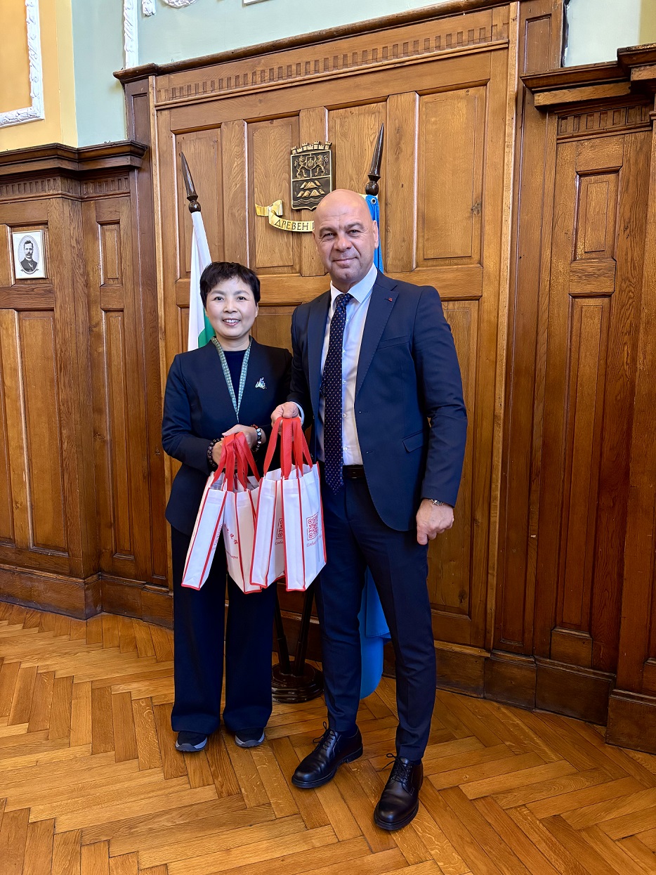 16 Кметът на Пловдив Костадин Димитров се срещна с посланика на Китайската Народна Република в България Н. Пр. Дай Цинли. Това е втора среща на градоначалника с Нейно превъзходителство, която е на посещение в Пловдив по случай откриването на новия завод на китайската фирма „ЗиЕс Юръп“ в Тракия икономическа зона. По време на срещата бяха обсъдени нови перспективи за задълбочаване на сътрудничеството между Пловдив и Китай в ключови области като икономика, туризъм, култура и образование. „Този високотехнологичен завод е поредният голям инвестиционен проект, който се присъединява към Тракия икономическа зона само за последния месец. Пловдив продължава да бъде предпочитана дестинация за международни инвестиции и се утвърждава като един от най-важните индустриални центрове в България“, заяви Димитров. Н. Пр. Дай Цинли подчерта, че това е една от най-значимите китайски инвестиции в Пловдив след края на пандемията и я определи като важен знак за укрепващото се партньорство между Китай и България. Посланик Дай и кметът обсъдиха и предстоящия фестивал на „Драконовите лодки“, който ще се състои в Пловдив през следващата година. Двамата изразиха увереност, че провеждането на традиционния китайски празник допълнително ще развие културните връзки между България и Китай. В знак на благодарност за доброто партньорство с Община Пловдив, китайското посолство дари на кмета Костадин Димитров пет таблета, които да бъдат предоставени на пловдивски училища, в които се изучава китайски език. Може да ви хареса също Вицепремиерът Томислав Дончев и кметът Костадин Димитров откриха нов завод в Тракия икономическа зона Община Пловдив засилва контрола върху нерегламентираното изгаряне на отпадъци Децата от район „Източен“ с мисия: За един по-мирен свят График за почистване на дъждоприемни шахти от 27 до 31 октомври