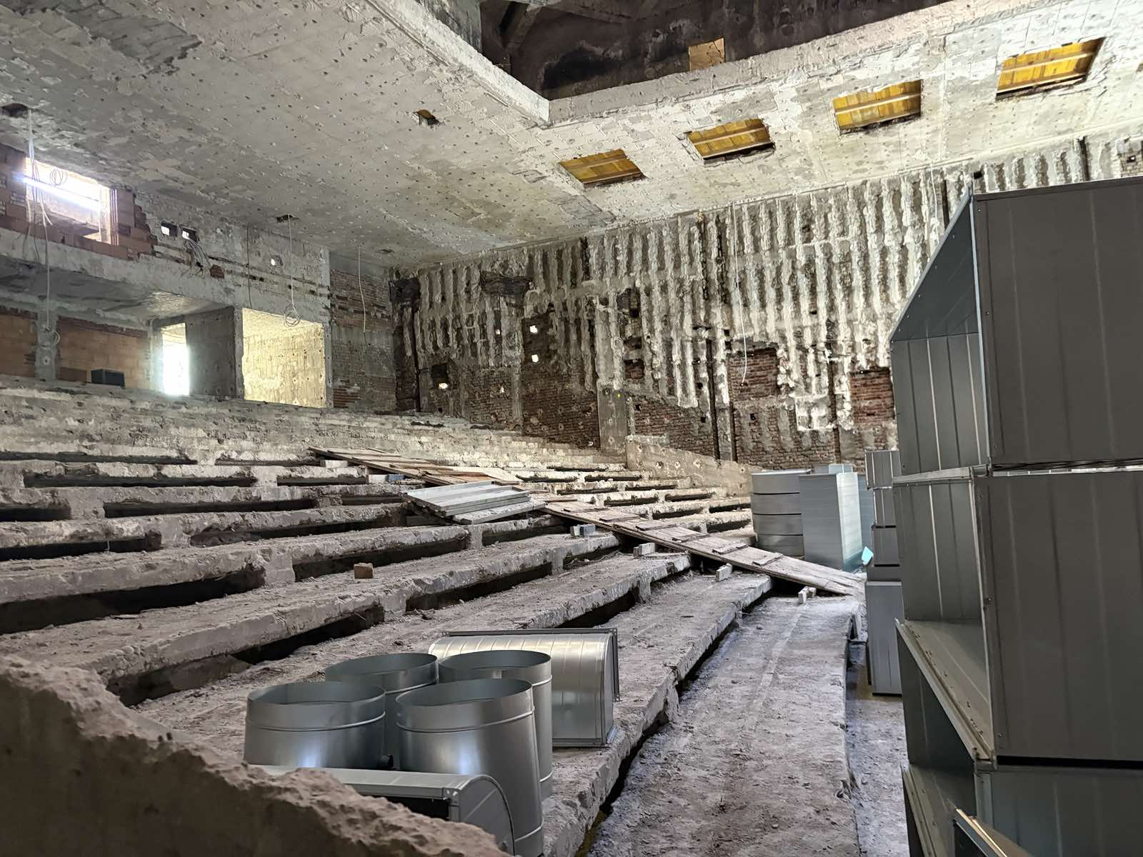 521 С интензивни темпове се движат строителните дейности по реконструкцията на кино „Космос“. В това се убеди кметът на Пловдив Костадин Димитров, който посети обекта и разговаря с техническите ръководители. Вече са демонтирани настилки, мазилки, ламперии, седалки, облицовки, въздухопроводи, електрически и ВиК инсталации, фасадните дограми, покривната конструкция, гипсови панели от стените и тавана в залата и помощна постройка със стара цистерна за гориво, заедно с обслужващите я тръби. Изградена е външната канализационна система от северната страна на сградата и са поставени канализационните тръби в сутерена. Налят е бетонът на фундаментите за стълбището, външния асансьор и част от стените. Възстановени са конструктивни елементи и са монтирани метални конструкции за димоотводни вентилатори. В начален етап е изграждането на товарен асансьор по източната фасада за качване на декори и материали от склада до сцената, както и полагането на хидроизолация на покрива. В момента се извършват зидарски работи на втория етаж, поставя се нова електроинсталация и се работи по климатизацията на вътрешните помещения. „Радвам се да видя напредъка по един от най-емблематичните проекти за нашия град — възраждането на кино „Космос“. Това място има особено значение за пловдивчани — не само като архитектурен символ, но и като културна памет. С реконструкцията му ние не просто възстановяваме една сграда, а съживяваме оригиналния й и автентичен дух и създаваме модерно мултифункционално пространство за кино, театър, концерти и културни събития“, заяви кметът на Пловдив Костадин Димитров. Той е уверен, че с новия си облик кино „Космос“ – част от спомените на поколения пловдивчани, ще се върне като едно от символичните места в Пловдив. Кметът благодари на проектантите, строителите и всички партньори, които влагат усилия, за да се случи това. Може да ви хареса също Летящ старт! „Съвет за спортно развитие – Пловдив“ подкрепя редица турнири Напрежение и скандали пред служба „Миграция” в Пловдив Комисар Венелин Костов е назначен като заместник-директор на ОДМВР – Пловдив Район „Тракия“ отбеляза Благовещение с празнична програма