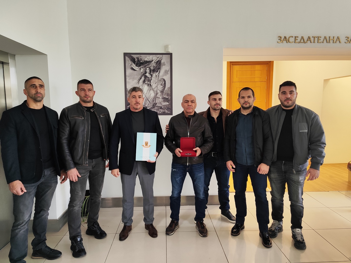 434 Председателят на Общински съвет връчи отличието „Почетен знак на град Пловдив“ на Армейски спортен клуб по борба „Тракиец“, който бе удостоен за изключителен принос към развитието на спорта и обществения живот на град Пловдив. През 2025г. пловдивският клуб спечели отборната титла от Държавното първенство по свободна борба за мъже. Почетният знак бе получен от председателя на клуба Данаил Димитров, който благодари за оказаната висока чест и подари от името на клуба купа на кмета на града. „Използвам случая да изкажа своята благодарност към всички треньори, състезатели и спонсори на клуба, тъй като този успех е благодарение на тях“, допълни Димитров. Кметът Димитров също поздрави клуба за постигнатите успехи, допълвайки че общината продължава да инвестира в подобряването на условията за спорт в града. Припомняме, че Общински съвет гласува с единодушие решението. В мотивите към предложението се посочва, че през последните години АСКБ „Тракиец“ – Пловдив демонстрира устойчив растеж и високи спортни постижения. Клубът развива активна тренировъчна дейност във всички възрастови групи, включваща деца, юноши и мъже – с общо над 70 активно трениращи състезатели. Част от дейността включва социално ориентирани инициативи, с възможност за достъп на деца от различни социални групи, както и участие в състезания с подкрепата на клуба и партньори. Може да ви хареса също Най-мръсният въздух е в Пловдив от петък до неделя Костадин Димитров: Работим много близо с държавата – няма да теглим заем 7-годишното дете, оцеляло при трагедията край Пловдив, е в съзнание Премиерът Желязков разпореди денонощно наблюдение на река Струма и водосбора й по цялото течение от язовир Студена