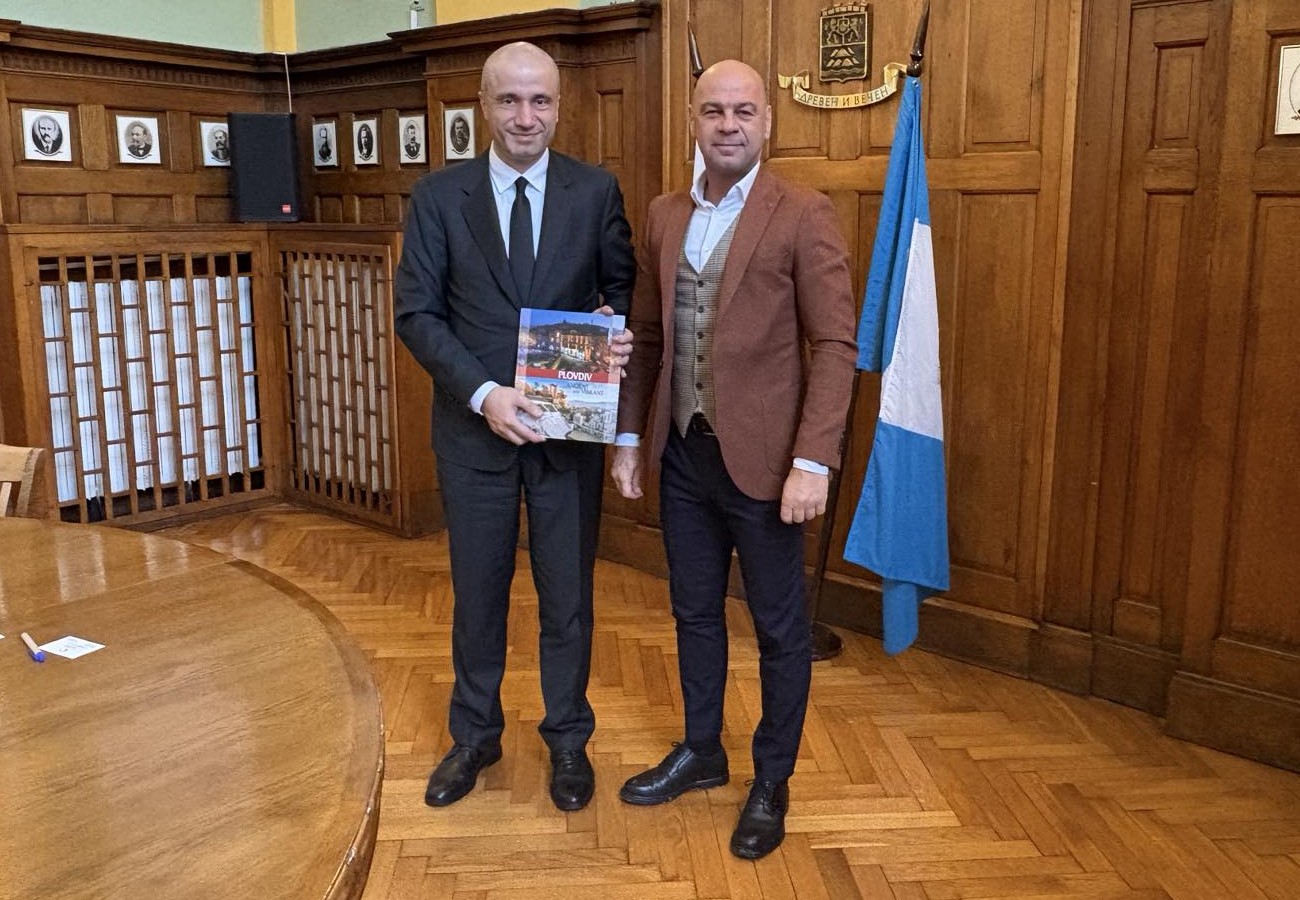 382 Кметът на Пловдив Костадин Димитров прие новоназначения генерален консул на Република Турция в Пловдив Емре Манав. По време на срещата двамата обсъдиха възможностите за задълбочаване на сътрудничеството между Пловдив и Турция, развитието на икономическите и културните връзки, както и перспективите за насърчаване на туризма и образователния обмен. Кметът Костадин Димитров приветства дипломата и изрази увереност, че партньорството между двете страни ще продължи. „Пловдив е мултиетнически и толерантен град. Уверен съм, че ще продължим да развиваме отношенията си в дух на уважение и разбирателство“, посочи той. От своя страна Емре Манав благодари за топлия прием и подчерта значението на Пловдив като ключов център на културен и икономически обмен между България и Турция. Той изрази увереност, че през предстоящия му мандат ще бъдат осъществени редица проекти, които ще са от полза за местните общности и бизнеса. В края на срещата двете страни потвърдиха готовността си да реализират съвместни инициативи, които ще работят за укрепването на двустранните отношения между Пловдив и Република Турция. Може да ви хареса също Най-мръсният въздух е в Пловдив от петък до неделя Костадин Димитров: Работим много близо с държавата – няма да теглим заем 7-годишното дете, оцеляло при трагедията край Пловдив, е в съзнание Премиерът Желязков разпореди денонощно наблюдение на река Струма и водосбора й по цялото течение от язовир Студена