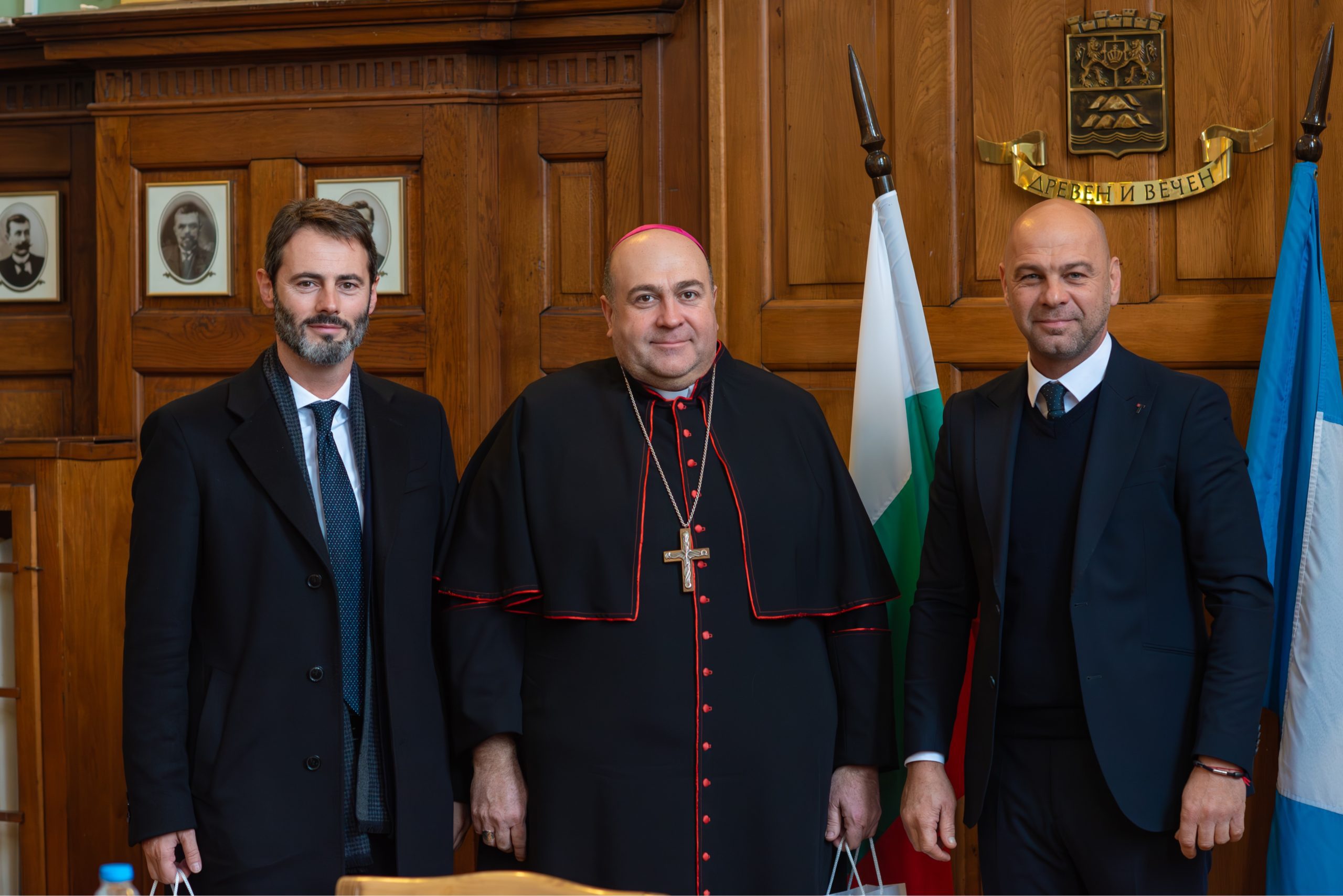 346 Кметът на Пловдив Костадин Димитров прие в заседателната зала на Община Пловдив новия католически епископ на Софийско-Пловдивския диоцез Н. В. Пр. монсеньор Румен Станев. „На 7 януари Апостолическият нунций монсеньор Лучано Суриани, представител на Светия отец Лъв XIV в България, прочете декрета за назначението ми по време на молитвено богослужение в катедралния храм „Свети Лудвиг“ в Пловдив”, посочи монсеньор Румен Станев. Той допълни, че дълги години е бил свещеник в Раковски, където община, църква и училище са работили заедно. „Пловдив е символ на думата „Заедно“. Градът ни е пъстър и е известен с това, че е дом на различни религиозни общности, които живеят в мир и хармония“, подчерта кметът Костадин Димитров. По думите му пловдивчани намират допирни точки в ежедневието си, за да преодоляват предизвикателствата и да вървят напред заедно. Кметът посочи, че в момента общинската фондация „Пловдив 2019” реновира пешеходния подлез „Археологически“. „Целта е пространството да се превърне в център на културата и да показва богатото културно-историческо наследство на Пловдив“, отбеляза Костадин Димитров. На 7 февруари в 11 часа в католическата катедрала „Свети Лудвиг“ ще се състои тържествено богослужение – израз на благодарност към Бога и начало на пастирското служение на новия епископ, в дух на вяра, единство и надежда. На срещата присъстваше и Микеле Санторелли – предприемач, общественик, меценат и създател на фондация „Творци на надеждата“. Може да ви хареса също Новият шеф на полицията в Пловдив свика работна среща за състоянието на Околовръстния път В ход е санирането и на блок на ул. „Генерал Радко Димитриев“ в „Източен“ Стотици пловдивчани почетоха 148-та годишнина от Освобождението на България и Националния празник – 3 март С благодарствен молебен започнаха тържествата за 3 март в Пловдив