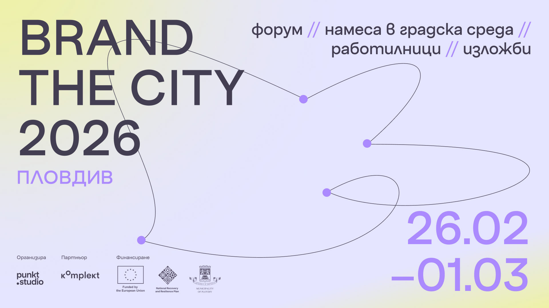521 От 26 февруари до 1 март 2026 г. Пловдив ще бъде домакин на първото издание на фестивала за градски дизайн – Brand The City, ново международно културно събитие, посветено на съвременния град, неговата визуална идентичност и ролята на дизайна в публичната среда. Фестивалът се организира от punkt.studio в партньорство с Община Пловдив, като част от дългогодишните усилия на градската администрация за развитие и утвърждаване на бранд на град Пловдив. Инициативата ще се развие в четири основни компонента: ● международен форум, ● намеса в градската среда, ● две изложби за съвременен градски дизайн и ● серия от работилници с активно участие на граждани. Пилотното издание поставя фокус върху града като жив организъм, в който дизайнът не е само визуален жест, а инструмент за свързване на хора, пространства и идеи. Затова и фестивалът се провежда под мотото „Градът като бранд. Жителите като гласове“, акцентирайки върху ролята на дизайна като подход за изграждане на споделена градска идентичност и за активно участие на гражданите в оформянето на визуалния облик на градовете. Централно място в програмата на фестивала заема еднодневният международен форум за градски дизайн, Brand The City Forum, който ще се проведе на 27 февруари 2026 г. в Епископската базилика на Филипопол. Събитието ще събере водещи европейски дизайн студиа, експерти и представители на публичния сектор, които ще споделят реални примери и дългосрочни модели за развитие на градски идентичности чрез дизайн, култура и публични политики. Brand The City Forum 2026 е организиран в партньорство със Studio Komplekt. Подробната програма и пълният списък с участници предстои да бъдат обявени. Форумът е с планиран капацитет до 120 участници, като скоро ще бъде отворена и формата за регистрация. Всички събития в програмата на фестивала ще са безплатни за желаещите да се включат. Следете развитието на проекта в официалния сайт или в социалните мрежи Фейсбук и Инстаграм. Фестивалът се реализира по проект „Отново Заедно“ на община Пловдив, процедура BG-RRP-11.021 „Ново поколение местни политики за култура за големи общини“, финансиран от Европейския съюз, чрез Механизма за възстановяване и устойчивост (NextGenerationEU), по Национален план за възстановяване и устойчивост на Република България. Може да ви хареса също Ето какви свободни работни места има в Пловдив Жители на Пловдив на протест: Строеж до река Марица буди страх от срутване и наводнение Район „Източен“ отбеляза Международния ден на етническата толерантност Заради лошото време: движението по „Васил Априлов“ ще бъде отложено до Великден
