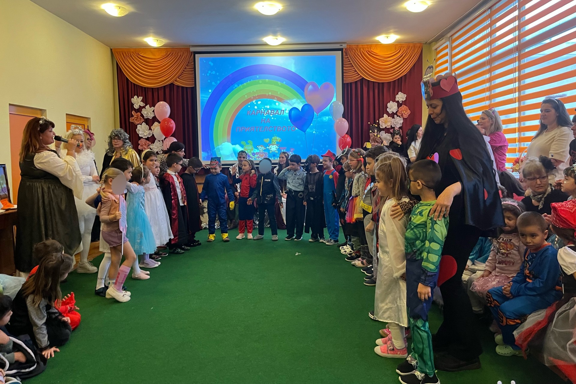 799 За поредна година децата, родителите и екипът на ДГ „Мирослава“ с много настроение и усмивки отбелязаха традиционния за детската градина „Карнавал на приятелството“. С огромно вълнение и артистичност всички дефилираха, облечени в костюми на Снежанка, Пепеляшка, Пипи Дългото чорапче, Котаракът в чизми, Елза, дългокосата Рапунцел, и дори Злодеида, смелия и силен Батман, Спайдърмен, Червената шапчица, Пчеличката Мая и още много други. С цветните си и пъстри костюми на любими герои участниците имаха възможност да се забавляват заедно и да съпреживеят радостта и щастието от споделеното приятелство между малки, големи и още по-големи. В ролята на Кралят и Кралицата на Кралството на приятелството се превъплътиха родители, които поздравиха малчуганите и им разказаха какво за тях е да имаш и да бъдеш истински приятел. И тази година децата от всяка група отправиха свое послание за приятелство в голямо цветно сърце: „Приятелството е, когато детските сърца туптят в един ритъм!“; „Приятелството е мост между сърца и усмивки!“; „Приятелството е ръка, подадена навреме!“; „Истинското приятелство прави детството вълшебно, а сърцата по-добри!“; „Истинското приятелство е като цвете, трябва да се грижиш за него, да го отглеждаш с любов и да се гордееш с цветовете му!“; „Приятелството е, когато радостта на другия е твоя радост!“. Децата споделиха, че за тях ценността на приятелството е искреност и търпение, доверие и прошка, подкрепа и разбиране, доброта и обич. И макар да са различни помежду си, те показаха, че са обединени и мечтаят за истинско приятелство, обич, весели игри, изпълнени с детски усмивки и щастие. Интерес тази година предизвика инициативата „Предай нататък“. Децата от ДГ „Мирослава“ изработиха сърца с послания за приятелство и добрина за учениците от ОУ Антим I“, СУ „Св. Патриарх Евтимий“, ОУ „Кочо Честеменски“, ОУ „Княз Александър I“. Приятелски послания за единство, доброта и сплотеност получиха и полицаи, пожарникари и медици от УМБАЛ „Свети Георги“, МБАЛ „Медлайн“, Клиника по Педиатрия „Пълмед“, Очна Клиника „Луксор“, Клиника по Хематология и Ендокринология, болницата в гр. Пазарджик, ръководството на РДПБЗН – Пловдив. А посланията, изработени от детските ръчички с много грижа и внимание, предадоха на своите получатели искрена усмивка, щастие, благодарност, трепет и желание да направят и предадат нещо добро на някого – „Вашата грижа прави света по-добро място“, „Благодарим, че давате надежда на всеки пациент“, „Всеки жест на внимание е малко чудо“, „Бъдете горди – Вашата работа спасява животи и носи надежда“, „Благодарим, че правите нашия живот по-сигурен”, „Вашата работа е символ на кураж и сила”, „Усмихни се и направи денят на някого по-щастлив“, „Споделената радост е двойна радост“, „Ти можеш повече, отколкото си представяш“ и още много други. Специални гости на празника бяха заместник-кметът по „Култура, културно наследство, археология и туризъм“ в район „Централен“ – Мария Колева, както и главният експерт „Образование, спорт и младежки дейности“ – Димитринка Илиева. Кулминация на карнавала бяха песните и танците, с които децата, родителите и гостите се представиха и забавляваха. За пореден път те показаха, че заедно могат да празнуват, да се обичат, да се подкрепят и да творят добро. „Именно тук – 