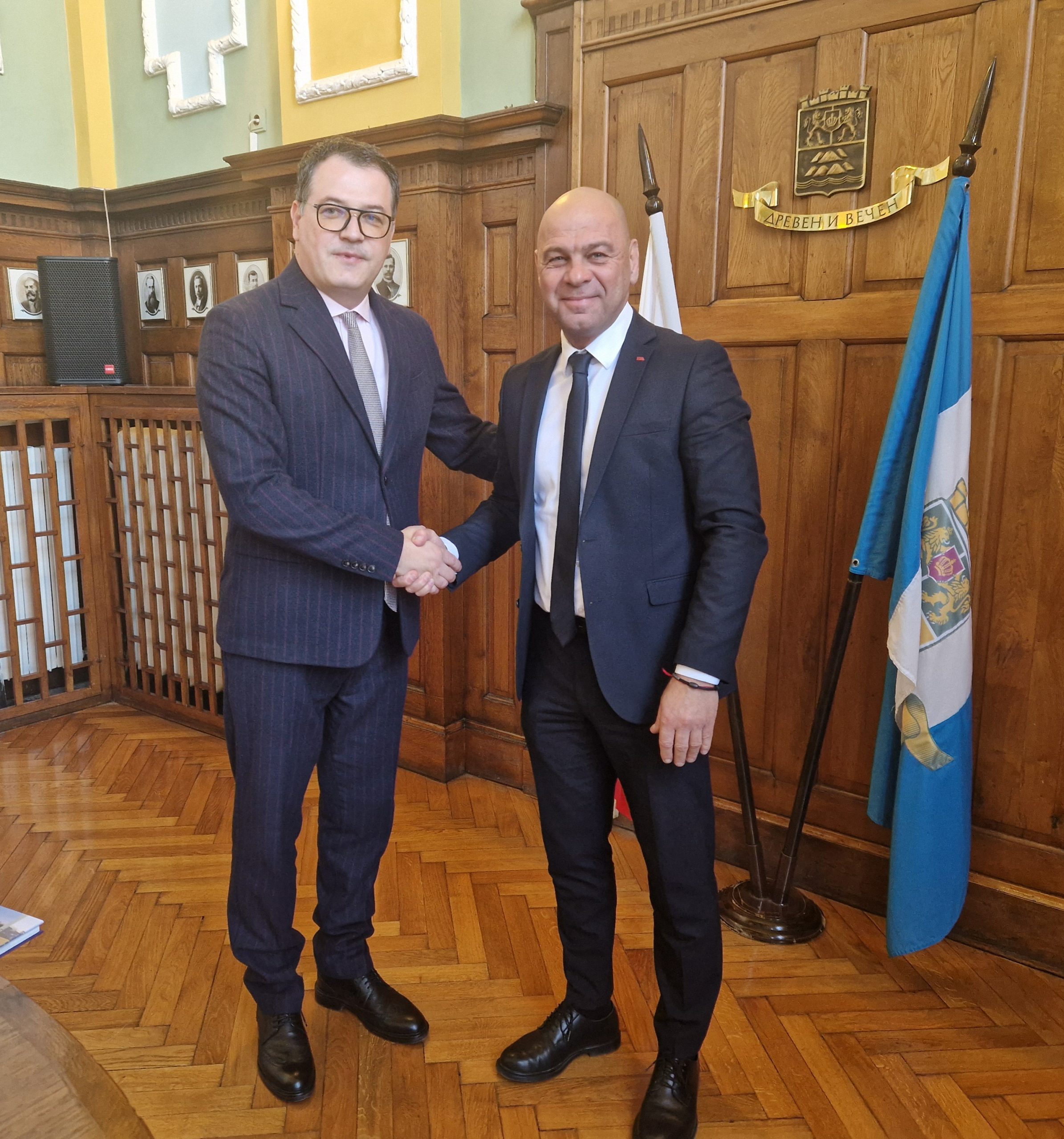 308 Кметът на Пловдив Костадин Димитров се срещна с посланика на Република Косово в България Н. Пр. Хаджи Байрактари, който изрази своето впечатление от изключително благоприятната бизнес среда в града на тепетата. Посланикът на Косово у нас разказа, че негов сънародник има логистичен търговски център в Пловдив. „Градът Ви е изключително гостоприемен за бизнеса и моят сънародник планира да разраства центъра си“, обясни Н. Пр. Хаджи Байрактари. От своя страна кметът на Пловдив Костадин Димитров подчерта, че тук се намира Тракия икономическа зона, която е отличен пример за добрата колаборация между частен бизнес, община и държава. „Броят на инвестициите продължава да расте и да подрежда Пловдив на челните места по индустриален напредък. Неслучайно имаме и дуално обучение, което често осигурява кадри за фирмите в икономическата зона“, подчерта градоначалникът. По време на срещата двамата обсъдиха още възможности за побратимяване на Пловдив с град от Република Косово, образователни и бизнес проекти. Може да ви хареса също Ето какви свободни работни места има в Пловдив Жители на Пловдив на протест: Строеж до река Марица буди страх от срутване и наводнение Район „Източен“ отбеляза Международния ден на етническата толерантност Заради лошото време: движението по „Васил Априлов“ ще бъде отложено до Великден