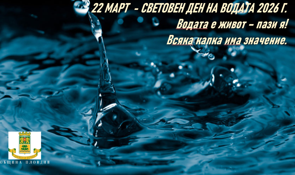 12 По повод Световния ден на водата – 22 март – на фасадата на Дома на културата „Борис Христов“ ще бъде реализирана специална светлинна проекция със снимка и послание: „Водата е живот – пази я, всяка капка има значение!“ Инициативата има за цел да насочи общественото внимание към значението на водата като жизненоважен ресурс и необходимостта от нейното устойчиво и отговорно използване, както и да насърчи пловдивчани да се включат в опазването й. Като част от събитието в дирекция „Опазване на околната среда“ на Община Пловдив в сградата на ул. „Емил Де Лавеле“ №9 ще бъдат изложени рисунки на деца от ДГ „Десислава“, които представят факти за ползите от водата, както и последиците от нейното разхищение и замърсяване. Може да ви хареса също Със серия от инициативи: В район „Южен“ отбелязват Световния ден на водата Ето какви свободни работни места има в Пловдив Жители на Пловдив на протест: Строеж до река Марица буди страх от срутване и наводнение Район „Източен“ отбеляза Международния ден на етническата толерантност