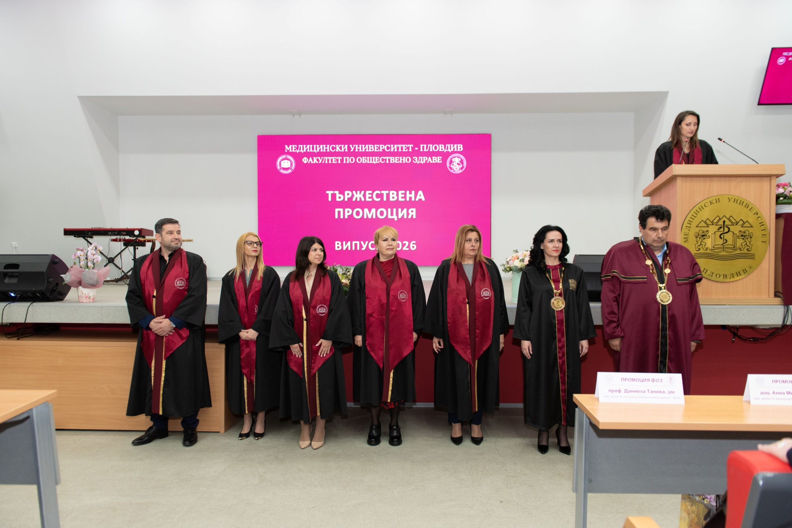 15 Заместник-кметът по екология и здравеопазване Иван Стоянов бе гост на тържествената промоция на дипломантите от випуск 2026 на Факултета по обществено здраве при Медицински университет – Пловдив. Той поздрави ръководството на университета като двигател на модерното здравеопазване и подчерта значимостта на бъдеща професионална реализация на абсолвентите за развитието на здравната система и опазването на общественото здраве. Общо 177 магистри и бакалаври получиха своите дипломи тази година, като средният успех от обучението и държавните изпити е много добър. Дипломанти завършиха в направленията „Обществено здраве и здравен мениджмънт“, „Управление на здравните грижи“, „Фармацевтичен бизнес мениджмънт“ и „Рехабилитация, уелнес, СПА и балнеолечение“. Тържествената церемония премина в празнична атмосфера, с участието на преподаватели, близки и гости, които споделиха значимия момент с абсолвентите. Ръководството на университета пожела на младите специалисти успешна професионална реализация и принос към общественото здраве в България. Може да ви хареса също Обновяват девет паркинга в Пловдив с камери, бариери и умни системи Десетки нови чинари обогатяват зелената система на Гребната база Ясни са номинациите за престижната Награда „Пловдив“ за изминалата година Заместник-кметът инж. Хакъ Сакъбов присъства на откриването на STEM център в СУ „Пейо Яворов“