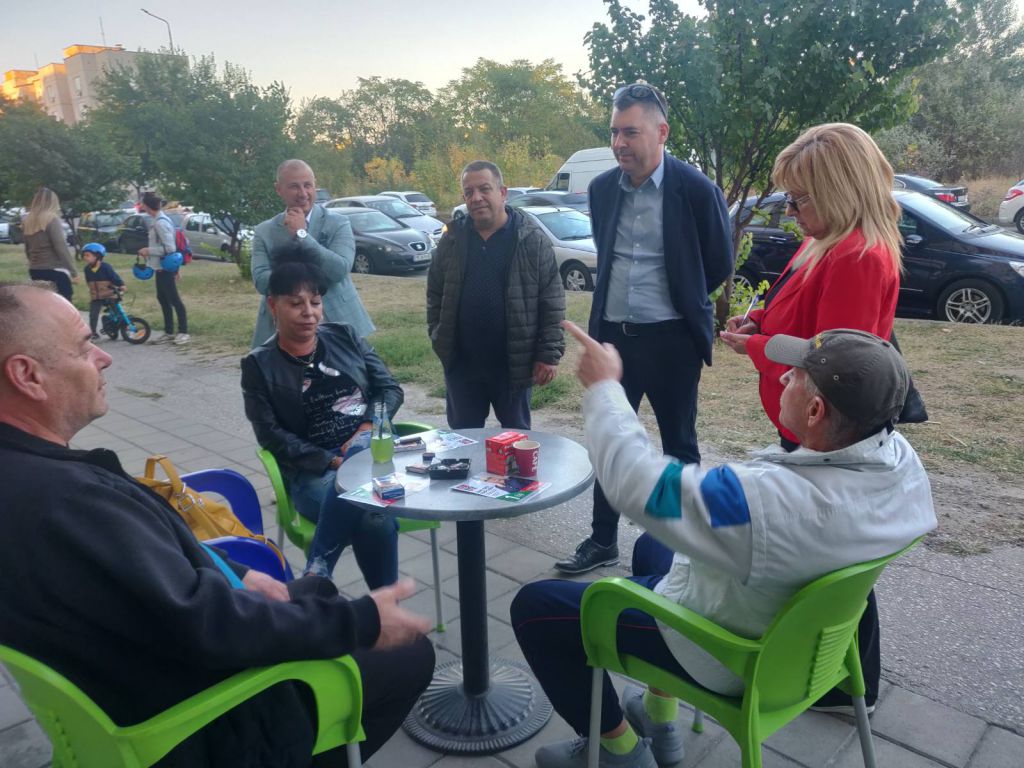 167 Само три контейнера за смет тип „бобър“ за 500 семейства?! Това е положението със сметосъбирането за хората, живеещи в големия блок на комплекс Гербера 2, в микрорйон А 12 на най-младия пловдивски район. С тях днес се срещна кандидатът за кмет на района Анелия Кирова, заедно с кандидатите за общински съветници от листата на „БСП за България“ Диана Димитрова, Румен Мутреников, Ердуан Файтин и председателя на РПЩ-Тракия Васил Сотиров. „За липсата на достатъчно „бобри“ за боклук е необходимо да се обърнете писмено към районната администрация, която от своя страна, трябва да поръча доставката им на ОП „Чистота“, посъветва гражданите Кирова. Живеещите там са новодомци и още млади семейства продължават да се нанасят в блока. Хората споделиха притесненията си, че в квартала не разполагат с детска ясла, нито наблизо в околните има такава, а нуждаещите се малки деца само в комплекса са над 100. Ситуацията с паркирането също ги притеснява и самите те имат предложение как може да се реши този въпрос пред техния блок. Проблемът се влошава и от последната спирка на градски транспорт по линиите на автобусите с номера 66, 29 и 9, която е буквално пред входовете им и живеещите не могат да си приберат автомобилите. Може да ви хареса също Слави Трифонов определи присъдата срещу Люпчо Георгиевски като поредна политическа антибългарска репресия Над 180 000 опита на мигранти да влязат у нас са предотвратени от гранични полицаи през миналата година Близо 3400 сигнала за изборни нарушения са постъпили в прокуратурата Кметът и общинските съветници в Кричим положиха клетва