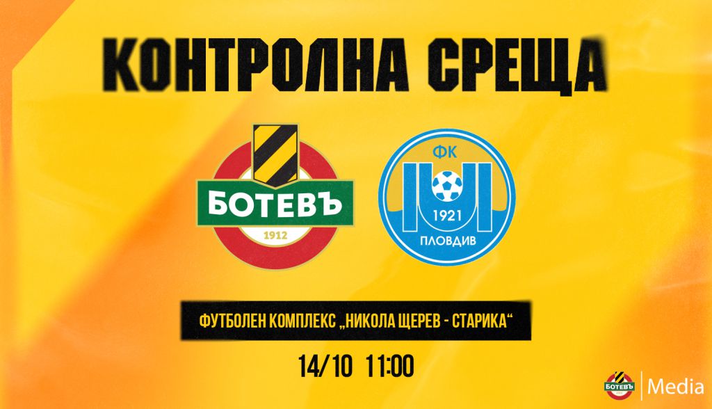 158 Промяна в часа на контролната среща срещу Марица в събота (14.10) Проверката ще се състои от 11:00ч. вместо предварително обявения час от 17:00ч. Двубоят ще се проведе на Футболен комплекс “Никола Щерев – Старика” и ще бъде със свободен вход за фенове и журналисти Може да ви хареса също Ботев се раздели с Херо Херо преследва трети удар по Левски като гост Напечен мач на Герена, Левски приема Ботев Пд Веласкес сменя половината отбор, хвърля Око-Флекс срещу Ботев (Пд)