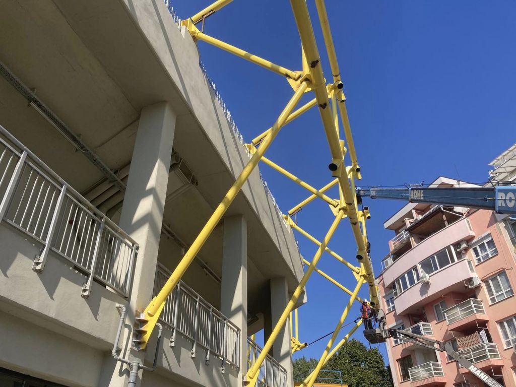 247 Днес започна и монтажът на фермите на северната трибуна! Това съобщиха от ПИМК – фирмата изпълнител на строителството на строителството на стадион „Христо Ботев“. На Южната трибуна е сложена външната конструкция, а от другата седмица започва и поставянето на фермите. Може да ви хареса също Ботев се раздели с Херо Херо преследва трети удар по Левски като гост Напечен мач на Герена, Левски приема Ботев Пд Веласкес сменя половината отбор, хвърля Око-Флекс срещу Ботев (Пд)