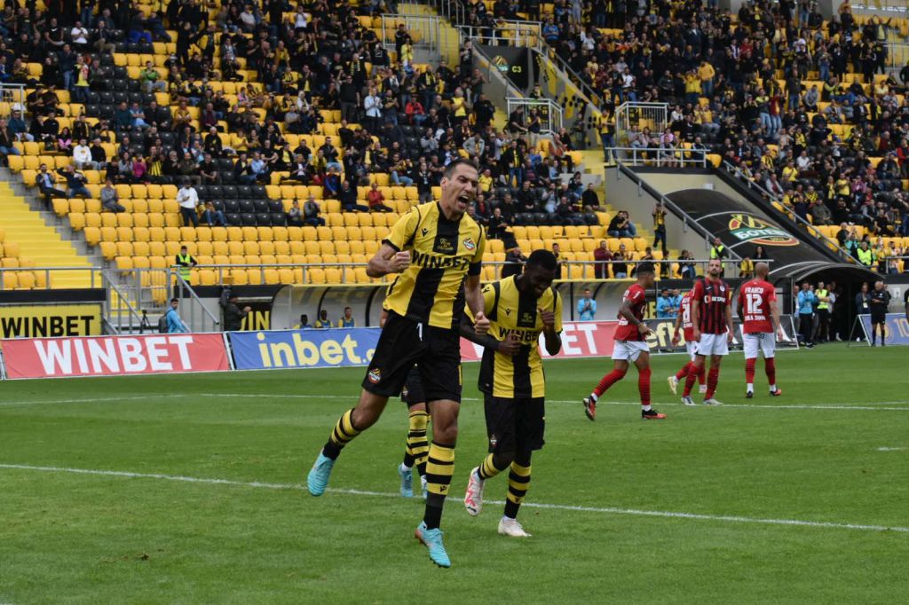 151 Ботев се развихри и победи с 6:0 Локомотив София в мач от 15 ти кръг на efbet Лига. Жълто- черните бяха неукротими на терена и не оставиха никакъв шанс на съперника. Тон за головата фиеста даде Антоан Бароан още в 5′ на мача, когато след разбъркване в наказателното поле се оказа най-съобразителен и вкара топката в мрежата за 1:0В 11′ Бароан намери отлично Самуел Акере, който с точен удар в долния ляв ъгъл на вратата на Гайе вкара за 2:0В края на първото полувреме Ивайло Найденов изрита Антоан Конте при опит да изчисти топката и съдията Занев показа бялата точка.Зад топката застана рожденикът Ивелин Попов, който бе безпогрешен за 3:0. И втората част жълто- черната доминация продължи.В 57′ Уме Емануел покачи на 4:0 след като получи отличен пас от Антоан Бароан в наказателното полеДесет минути по- късно Антоан Бароан бе изведен на добра позиция и не сбърка сам срещу Гайе за 5:0.В 77′ Акере бе изведен на отлична позиция и оформи крайното 6:0. Така след две поредни гръмки победи Ботев може да излезе със самочувствие в дербито с Локо. Градският съперник е лидер в класирането, но в момента е в лоша серия преди днешния си мач срещу ЦСКА 1948. Може да ви хареса също Ботев Пловдив организира инициатива за доброволно кръводаряване Ето ги съставите на Ботев и Септември Ботев ще продължава добрата си серия Ботев (Пловдив) ще се опита да матира Монтана на Огоста