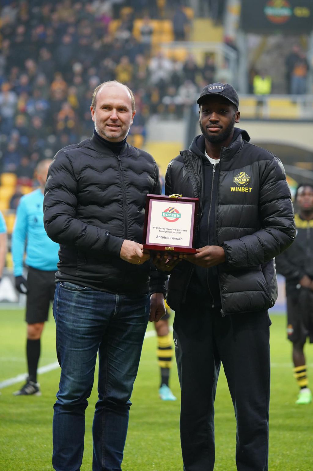 212 ПФК Ботев поздрави своя централен нападател Антоан Бароан и му връчва плакет „най-резултатният чужденец в историята на клуба“. Бароан се присъедини към жълто- черните през сезон 2021-2022 и отбеляза 27 попадения. Зад него са бразилците Жоао Пауло с 25 и Фернандо Виана с 24 гола. Може да ви хареса също Шалке 04 преговаря за бивш играч на Ботев Илиян Филипов: Да продължим да пишем историята със същата красота, вяра и борба, които ни определят вече повече от век. Да живее Ботев! Да живее Пловдив! Ботев (Пловдив) подкрепя предложението на Лудогорец за работна среща между клубовете, БФС и БПФЛ Ботев Пловдив е пример! Огромен интерес към кампанията От дете на дете!