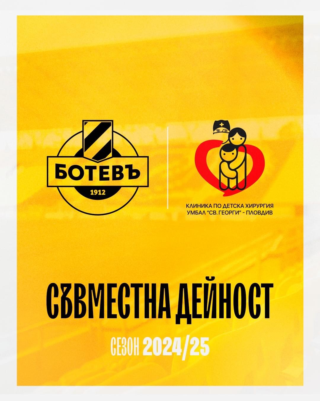 220 ПФК „Ботев“ и УМБАЛ „Свети Георги“ започват съвместна дейност, изцяло ориентирана в полза на обществото, това обявиха от жълто- черните. Най-старият футболен клуб и най-старото здравно заведение в Пловдив стартират своето сътрудничество с инициатива, насочена към развитието на детското здравеопазване. Клиниката по детска хирургия в УМБАЛ „Свети Георги“ има нужда от закупуването на бронхоскоп и сет за VATS процедури, с които да въведе и развие съвременните торакоскопски методи за лечение в детска възраст. Като начална стъпка за успешното реализиране на инициативата, ръководството на клуба, спортно-техническият щаб и футболистите от представителния мъжки отбор пожелаха да са първите, които ще дарят лични средства в подкрепа на каузата. ПФК „Ботев“ взе решение и част от приходите от продадените билети за предстоящия концерт на Горан Брегович, който ще се проведе на 11.09.2024 година на стадион „Христо Ботев“, да бъдат насочени към набирането на средства за закупуването на нужната апаратура. “Отправяме призив и към нашите бизнес партньори да се присъединят към благородната инициатива, с която заедно да подпомогнем развитието на детското здравеопазване в град Пловдив. Желаейки да проявим жест на уважение към нашите нови партньори, както и да утвърдим възвръщането на изконните морални ценности на ПФК „Ботев“, ръководството на клуба взе решение да постави логото на Клиниката по детска хирургия към УМБАЛ „Свети Георги“ на официалните екипи, с които представителният мъжки отбор ще изиграе своите предстоящи срещи от европейските клубни турнири. През годините ПФК „Ботев“ е изграждал своя имидж на уважавана институция, бидейки неизменна и важна част от живота на град Пловдив не само със своите спортни успехи, но и с ангажираността и подкрепата си към всички смислени каузи и начинания, съпътстващи и укрепващи неговото развитие. За нас е чест да продължим делото на своите предци, издигайки духовните ценности на клуба на пиедестал, достоен за името на нашия Патрон.”, написаха от Ботев. Може да ви хареса също Димитров: Индонезия има добри футболисти и на мен ми прилича на един средноевропейски отбор България превзе Джакарта и спечели FIFA Series 2026 Вижте как Ботев посрещна националите на Колежа Шест момичета от школата на Ботев взеха участие в тренировъчен лагер на националния отбор на България