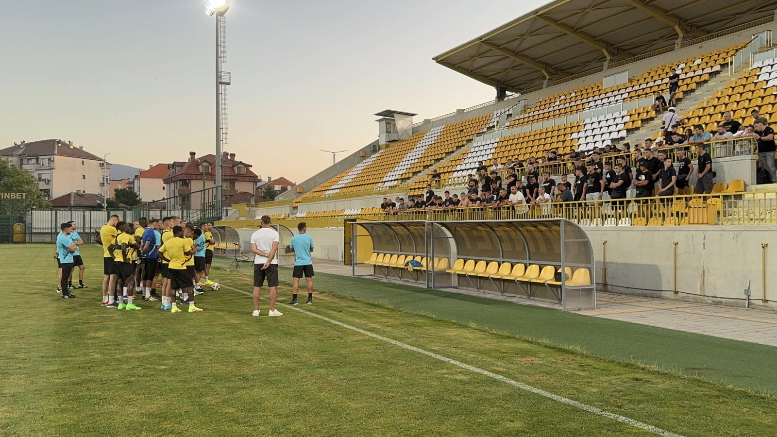 349 Ботев прави последната си тренировка преди мача с Марибор на своята база в Коматево. Множество фенове на жълто- черните се събраха на Централната трибуна и разговаряха с играчите. „Искаме да играете за нас и за клуба. Ние отново ще сме 12- тият играч. Ще имате и сериозна подкрепа в Словения. И през целия сезон ще бъдем с вас“, казаха феновете, които аплодираха отбора. След това Душан Керкез започна заниманието. Атанас Чернев и Димитър Тонев тренират на обекчен режим и няма да вземат участие в мача. Във фитнеса вече тренира и Георги Николов, който претърпя операция в Испания. https://plovdivnews.bg/wp-content/uploads/2024/07/tr-mar.mp4 Може да ви хареса също Спортът и мачовете по телевизията днес 1800 билета за феновете на Локо за дербито на Колежа, вече са в продажба БОК номинира тенисиста Иван Иванов за най-добър млад спортист на Европа Александър Чеферин изрази съболезнования за загубата на Борислав Михайлов