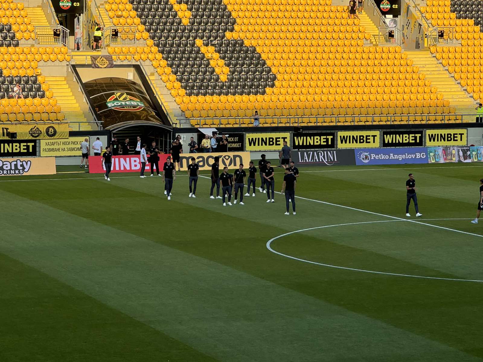 237 Станаха ясни съставите на Ботев и Марибов. Срещата от първи предварителен кръг на Лига Европа започва в 21:00 часа на стадион Христо Ботев Ботев: Игонен, Акере, Балоянис, Джеймс Етоо, Конте, Минков, Ннади, Перера, Попов, Тамм, Уджа Марибор: Юг, Баришич, Видмар, Иличич, Карич, Милеч, Репас Ж., Репас Я., Судани Ел, Ширвюс, Якупович Може да ви хареса също Димитров: Индонезия има добри футболисти и на мен ми прилича на един средноевропейски отбор България превзе Джакарта и спечели FIFA Series 2026 Вижте как Ботев посрещна националите на Колежа Шест момичета от школата на Ботев взеха участие в тренировъчен лагер на националния отбор на България