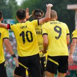 293 Ботев започна с победа новия сезон в efbet Лига след като се наложи с 3:1 над Ботев Враца. Треньорът на жълто- черните направи 7 промени спрямо състава, с който игра в реванша с Марибор. Само Игонен, Тамм, Попов и Илиев започнаха като титуляри. През първото полувреме срещата се игра в бавно темпо. Все пак Ботев Пловдив имаше няколко добри ситуации. Първо Корошец можеше да открие резултата, но ударът му мина малко над напречната греда. Удар на Никола Илиев от 10 метра пък срещна страничния стълб на вратата, пазена от Бариус. През второто полувреме само за 3 минути Ботев Пловдив взе добра преднина. В 54′ Нвачукву навлезе отлично отляво и намери Секулич, който от малкото наказателно поле откри резултата. В 57′ отново Нвачукву проби отляво и пак намери Секулич, който разстреля Бариус за 2:0 в полза на пловдивчани. В 60′ Диабате и Тамм не се ориентираха добре и Даниел Генов ги изпревари ипрехвърли излезлият неразчетено Игонен намалявайки разликата на 1:2. Жълто- черните обаче отново увеличиха преднината и на практика сложиха край на спора в 74′, когато влезлият на смяна Балоянис центрира от корнер, Тамм отклони с глава и Карабельов на правзна врата оформи крайното 3:1. До края на мача Секулич направи два пропуска. Така Ботев Пловдив влиза в много сериозна седмица. В четвъртък от 20:00 часа на Олимпийския стадион в Атина гостува на Панатинайкос в мач от втори предварителен кръг на Лига Европа, а в неделя от 21:15 на Колежа е дербито с Локомотив. Ботев Вр: Рубио, Ачков, Дарнел, Д. Георгиев, Цонков, Суарес, Смоленски, С. Георгиев, Траоре, Генов, Переа Ботев Пд: Игонен, Укаки, Тамм, Диабате, Йорданов, Карабельов, Попов (Етоо), Корошец (Рамейкис), Илиев (Акере), Нвачукву (Балоянис), Секулич Може да ви хареса също Димитров: Индонезия има добри футболисти и на мен ми прилича на един средноевропейски отбор България превзе Джакарта и спечели FIFA Series 2026 Вижте как Ботев посрещна националите на Колежа Шест момичета от школата на Ботев взеха участие в тренировъчен лагер на националния отбор на България