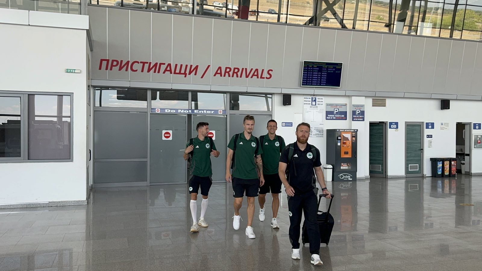 467 Отборът на Панатинайкос кацна на летище Пловдив в 12:10 часа с чартър от Атина. Прави впечатление, че за разлика от Марибор, гръцкият гранд е с оргомна делегация. Два автобуса, 3 микробуса и камион за багажа очакваха гърцитe. Треньорът на на клуба Алонско излезе първи от летището, а последен бе Тете, който бе привлечен за 7 милиона евро от Галатасай. От гръцкия отбор отказаха да говорят пред медиите и казаха, че ще говорят само на официалната прескоференция. https://plovdivnews.bg/wp-content/uploads/2024/07/panat.mp4 Може да ви хареса също Ето как се представиха националите на Ботев Спортът и мачовете по телевизията днес 1800 билета за феновете на Локо за дербито на Колежа, вече са в продажба БОК номинира тенисиста Иван Иванов за най-добър млад спортист на Европа