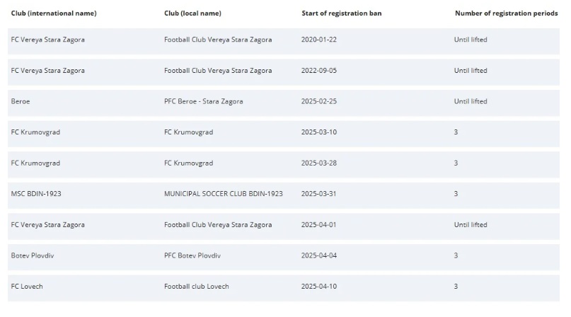 962 Ботев (Пловдив) получи пак забрана от ФИФА. „Канарчетата“ се сдобиха с поредна забрана за входящи трансфери, показва проверка в системата на световната футболна централа. Решението е от 4 април и важи за следващите три трансферни прозореца. Забраната е наложена заради неуредени финансови спорове с бивши футболисти на клуба, като става въпрос за Джеферсон. Ботев (Пловдив) имаше наложена подобна забрана на 24 март заради Троаре, като този казус вече е уреден от „жълто-черните“. В листата на ФИФА с български отбори, на които е наложена забрана за картотекиране на нови играчи, са още Верея, Берое, Крумовград, Бдин (Видин) и Ловеч. Най-ново е наказанието на ловчанлии. Тяхната санкция е влязла в сила на 10 април. Може да ви хареса също Втора чиста победа за Локомотив Авиа Умарбаев с поредна повиквателна за Таджикистан Треньорът на Добруджа бесен след загубата от Ботев Фалшив концерт на Миле Китич излъга стотици българи