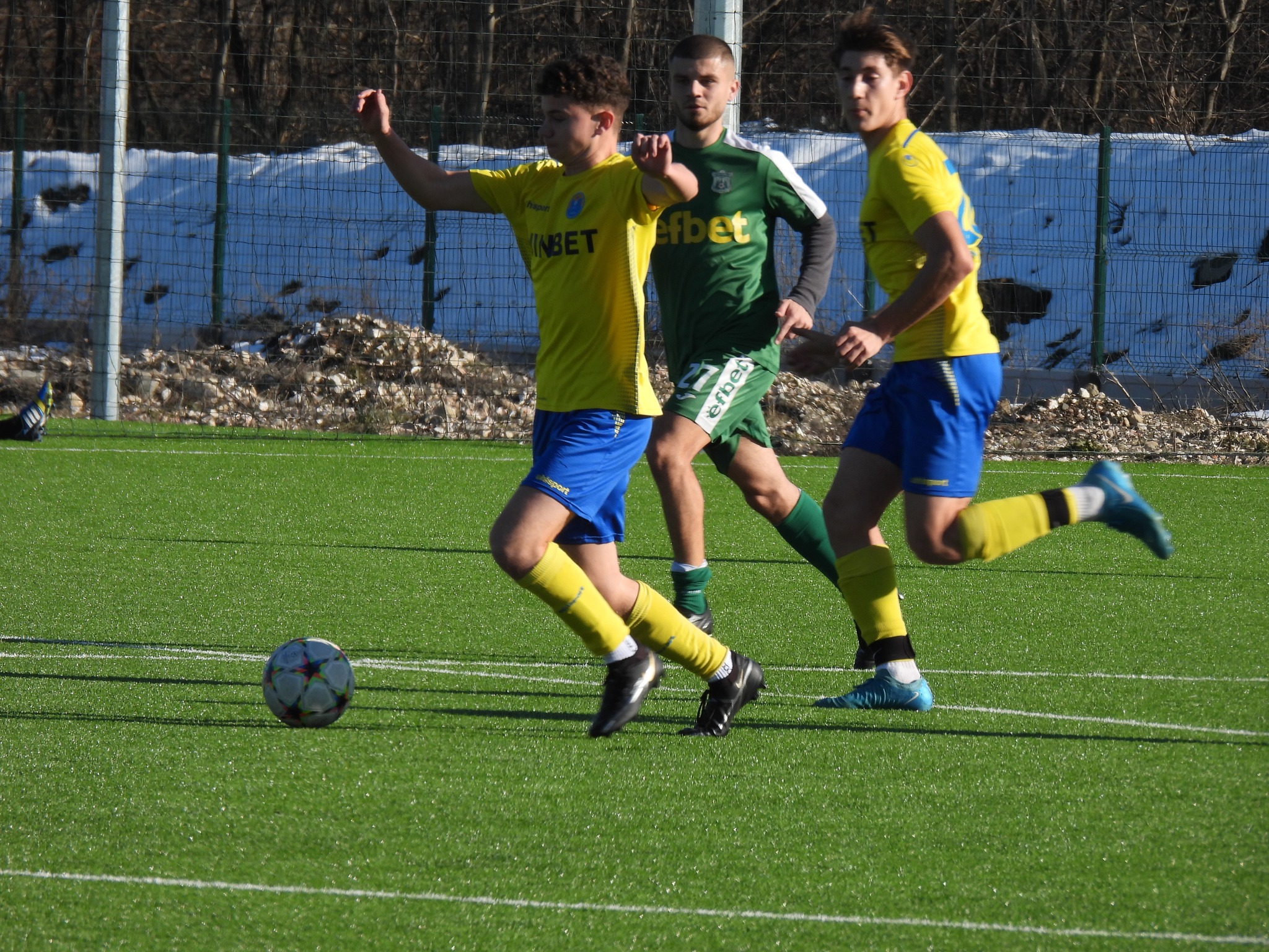 273 „Марица“ постигна успех в първата си контрола от зимната си подготовка. В събота „жълто-сините“ надиграха с 3:1 „Родопа“ (Смолян). Сещата се игра на изкуствения терен на спортния комплекс до Английската гимназия. Двата тима предложиха открит футбол. Пловдивчани играха изнесени доста напред, а гостите от Смолян организираха опасни контри. Всички попадения бяха отбелязани през първата част. Олджак Алиев даде преднина на „Марица“ в 9-та минута, но Венцислав Белчев изравни в 20-та. Венцислав Гюзелев отбеляза за 2:1, като това бе негов първи гол след завръщането му в клуба от северен Пловдив. Валери Домовчийски в самия край на първата част реализира за 3:1. През втората част в двата тима бяха извършени множество смени, като треньорът на пловдивчани Стойчо Драмов постепенно подмени всички играчи на терена. Положения пред вратите не липсваха, но попадения не бяха отбелязани и срещата приключи при резултат 3:1. За „Марица“ срещата пропуснаха контузените Георги Трифонов, Христиан Димитров и Наско Христев. Даниел Беломачев няма да бъде част от състава през пролетта, след като напусна. Участие взеха и доста юноши на клуба, най-младият от които бе Венцислав Кралев от набор 2008. В отбора на гостите също имаше липсващи футболисти. Следващата контрола на „Марица“ е срещу ЦСКА 1948 III и ще се играе в сряда – 22 януари в Пловдив, като теренът ще бъде уточнен допълнително. МАРИЦА: Петър Начев, Михаил Митев, Атанас Ташолов, Димитър Пройчев, Джошуа Харис, Даниел Спасов, Теодор Фърков, Александър Праматаров, Олджай Алиев, Венцислав Гюзелев, Валери Домовчийски (Виктор Петков, Иван Кръстев, Филип Колев, Георги Михайлов, Алекс Минев, Симеон Сираков, Радослав Мицев, Никола Кръстев, Емилео Макавеев, Венцислав Кралев, Красимир Лютов) Може да ви хареса също Пловдивски бизнесмен влезе в ръководството на Локо Локомотив не е губил среща през пролетния дял в първенството Кошмар! Малена Замфирова претърпя тежък инцидент в Чехия Нов казус в БОК: Кой настоява за обжалване на избора на Весела Лечева?