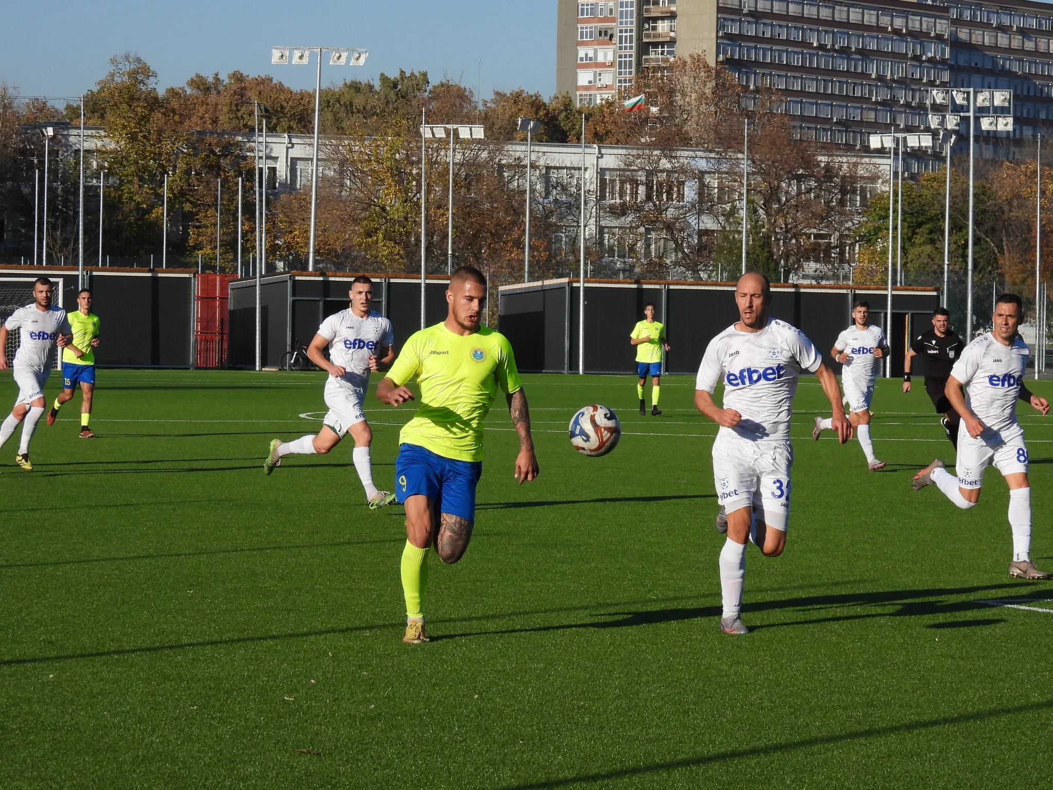 206 „Марица“ постигна убедителна победа с 5:0 над „Ямбол“ в среща от 17 кръг в Трета лига – Югоизточна група. Двубоят се игра в събота на изкуствения терен до Английската гимназия. Възпитаниците на Борислав Караматев и неговия екип решиха мача в своя полза още до полувремето, повеждайки с 3:0 след хеттрик на Олджай Алиев. Иван Кръстев липсваше от състава на „Марица“ поради контузия. Той ще пропусне останалите двубои до края на полусезона, като е твърде вероятно да не може да води зимна подготовка с отбора. „Марица“ доминираше изцяло през първата част. Тимът създаде доста положения, като се възползва добре и от грешки на противника. Още в началото на мача капитанът Веселин Марчев нацели греда с глава след центриране. В 19-та минута Олджай Алиев откри резултата. Той посрещна избита от вратаря топка и я насочи по земя в десния ъгъл. Пак той удвои в 28-та минута, възползвайки се от неразчетено връщане към вратаря. Алиев се пласира отлично между защитника и стража и отклони във вратата за 2:0. Веселин Марчев стреля във вратаря малко по-късно. Христиан Димитров в 31-та минута също опита удар, но Благой Макенджиев улови. В 37-та минута Георги Трифонов се освободи чудесно и стреля без забавяне, но пак вратарят на „Ямбол“ се намеси добре. Минута по-късно пак Трифонов имаше шанс, но бе отсъдена засада. Иначе Макенджиев улови на самата голлиния. Пет минут преди края на полувремето гостите стигнаха до първия си удар към вратата на Петър Начев, като той бе неточен. Страхотен удар на Димитър Пройчев бе спасен от Макенджиев. В 45-та минута Олджай Алиев със страхотен удар от ъгъла на наказателното реализира красив гол за 3:0. През второто полувреме пловдивчани върнаха газта и играта бе двуостра. Христиан Димитров стреля от дистанция в началните минути, но в аут. Гостите отговориха с неточен удар. Веселин Марчев бе изведен срещу Макенджиев, но вратарят успя да се намеси и да предотврати нов гол. Марчев и Трифонов имаха нов шанс за гол, за пореден път стражът на „Ямбол“ се намеси. Капитанът на гостите Иван Иванов стреля в 60-та минута, Петър Начев обаче без проблеми улови. Вратарят на „Марица“ се намеси успешно и при удар директно от корнер. Отново Иван Иванов пробва рефлексите на Петър Начев със силен удар, стражът на „жълто-сините“ бе непоколебим и изби с крак. Последните 15 минути бяха изцяло за тимът от северен Пловдив. В 79-та минута Веселин Марчев получи пас и нахлу на скорост в наказателното поле, намери влезлият преди минути Даниел Спасов, който отблизо реализира за 4:0. Спасов върна жеста в 89-та минута, когато обърна фланга на поредната атака към Веселин Марчев. Той от своя страна намери отлично Благовест Данчев в наказателното поле, за който не бе трудно да реализира, оформяйки крайното 5:0. Капитанът Веселин Марчев пък записа две асистенции в този мач. „Марица“ се изравни на върха с „Несебър“ на върха в класирането, като двата тима са с по 40 точки. Това стана възможно след нулевото равенство на морския отбор срещу „Спартак“. За съставът от северен Пловдив следва мач от турнира за Купата на АФЛ срещу „Левски“ (Карлово). По взаимна договорка между двата клуба срещата ще се изиграе в сряда, от 17 часа, на осветление, на изкуствения терен до Английската гимназия. На 22 ноември „Марица“ ще бъде домакин на „Спартак“ в мач от предпоследния кръг на есенния полусезон в 