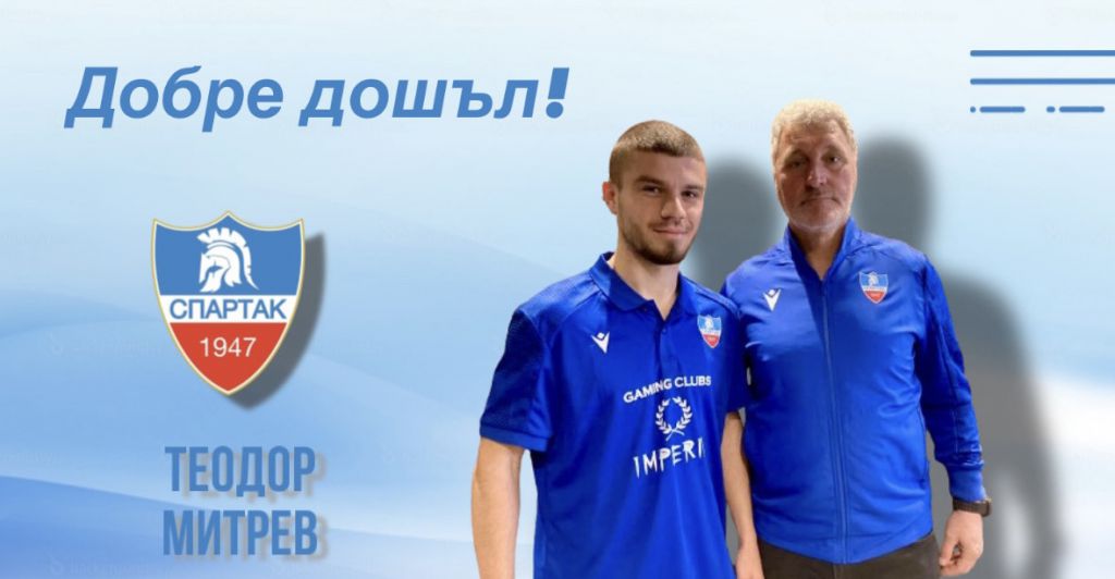 307 Спартак продължава със селекцията. Теодор Митрев е третото ново попълнение на „гладиаторите“. Досега бяха привлечени Сами Мехмедов и Пламен Цончев. Той е роден на 9.09.2001 г. и играе като дефанзивен халф. Теодор Митрев е юноша на Ботев, играл е още за Сокол Марково, Атлетик Куклен и Гигант Съединение. ПФК Спартак пожела успех на Теодор Митрев с екипа на „гладиаторите“. Може да ви хареса също Шалке 04 преговаря за бивш играч на Ботев Спартак Варна подкрепи призива на Лудогорец и Ботев Пд Много футбол по ТВ днес Спортна ТВ събота